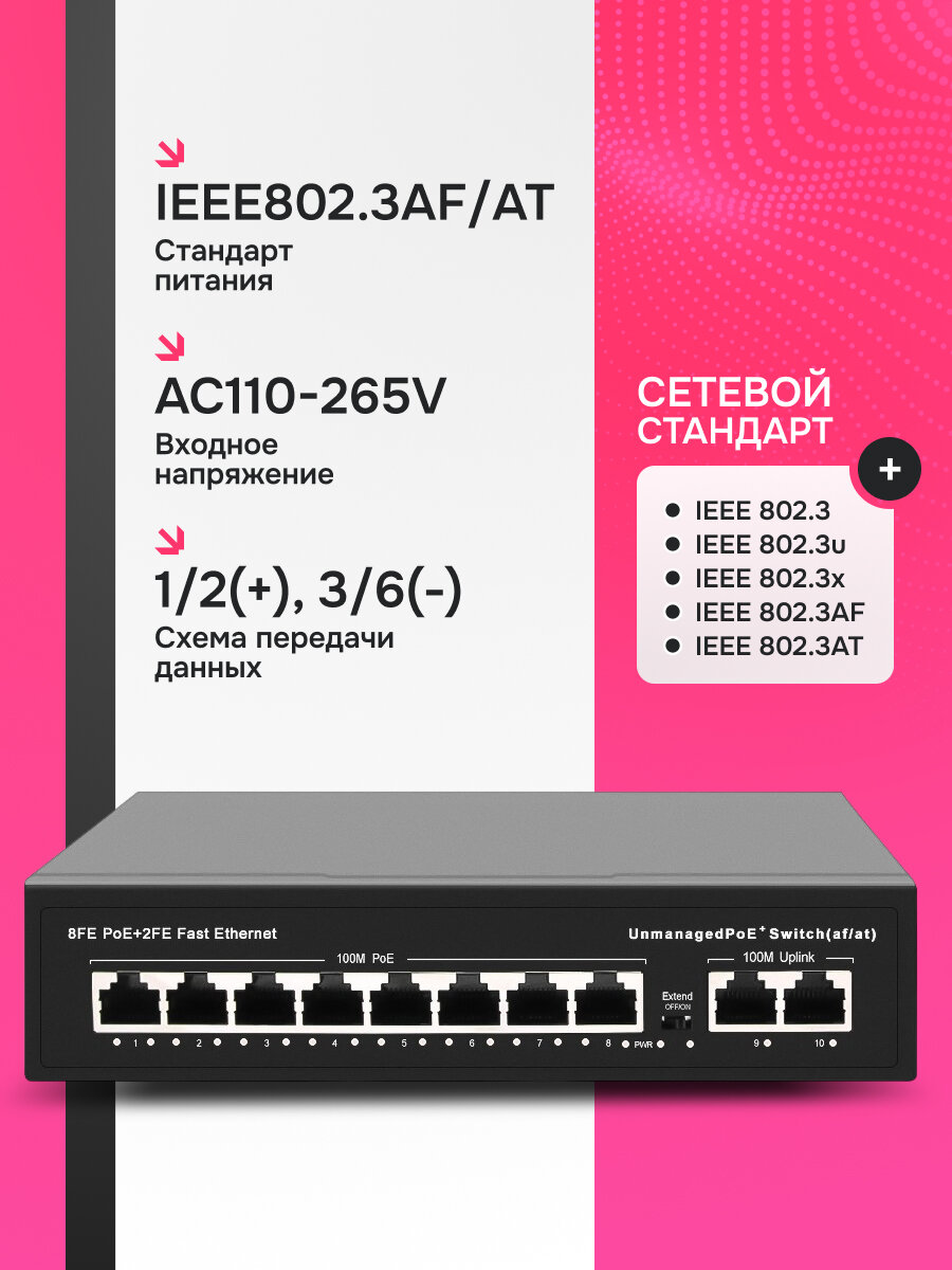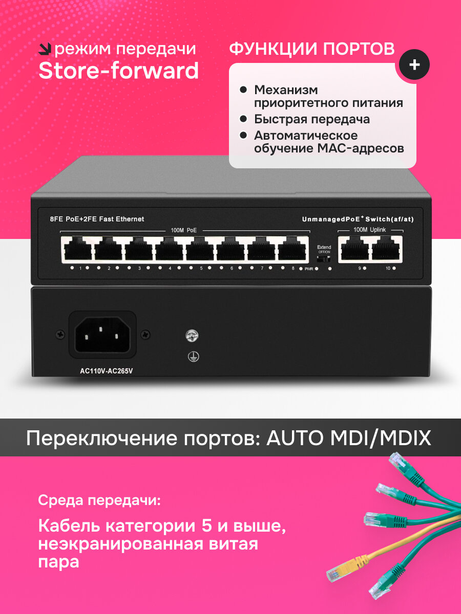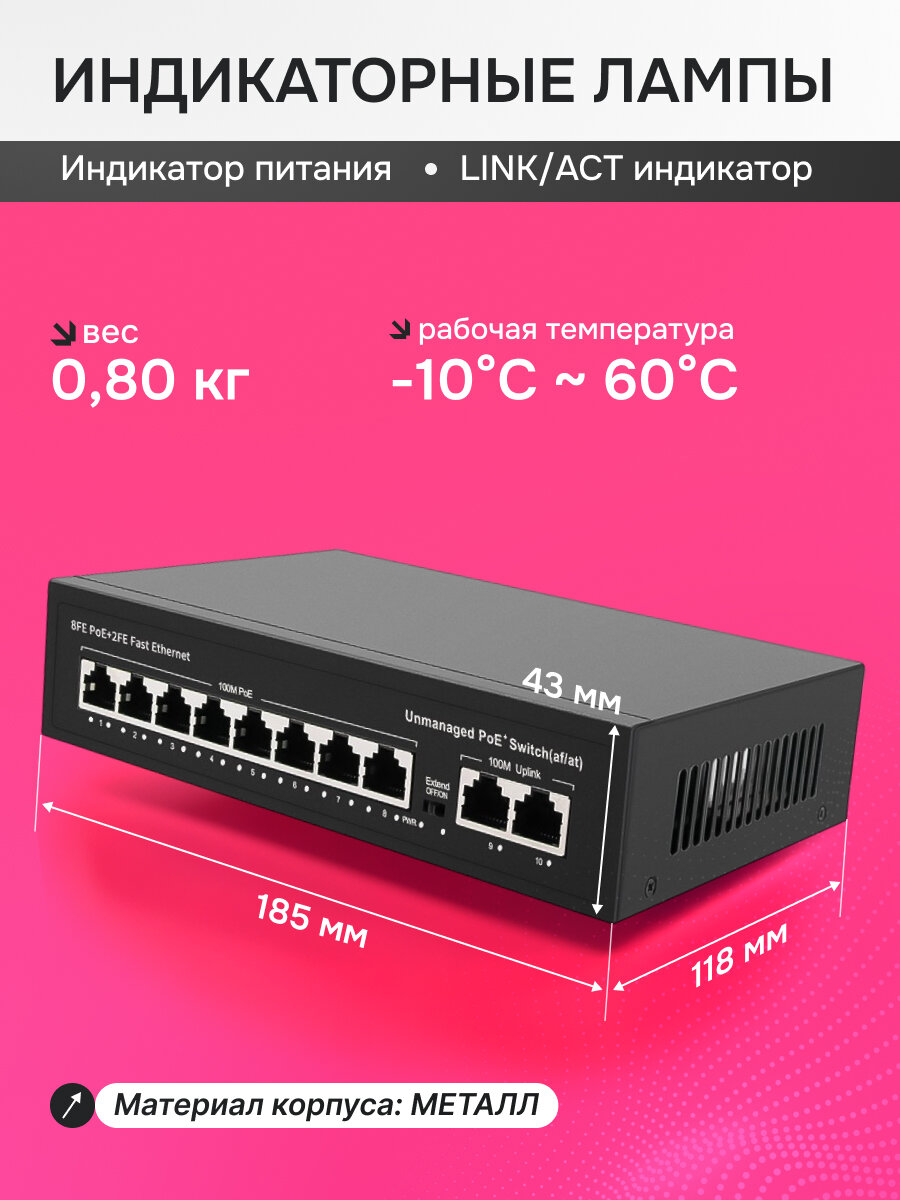 Коммутатор NexusSwitch 11 портов неуправляемый, сетевой информация: