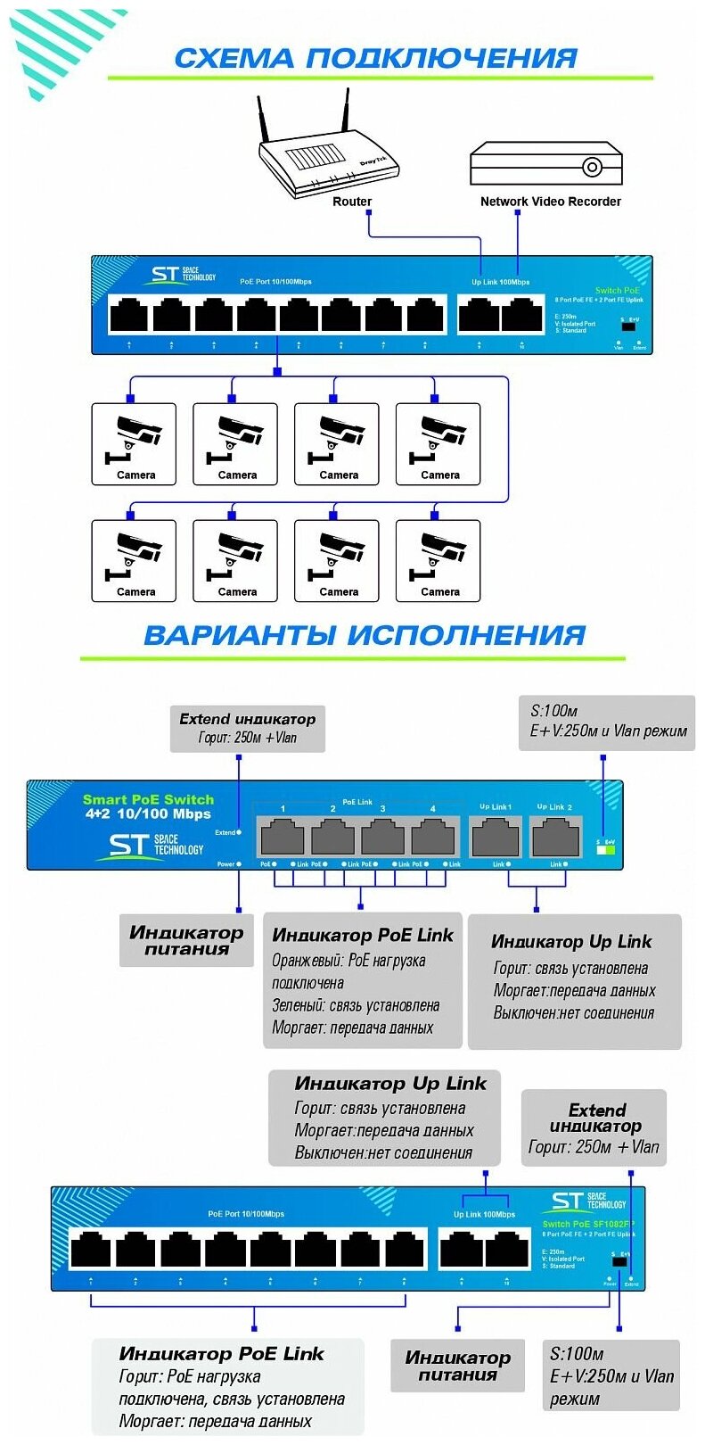 10 цен на Space Technology ST-S45POE (2M/78W/AB) (версия 2) коммутатор PoE 4-х портовый