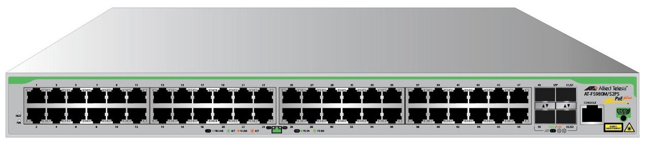 Коммутатор Allied Telesis AT-FS980M/52PS-50 48x100Mb 4SFP 48PoE 12PoE+ 375W управляемый информация: