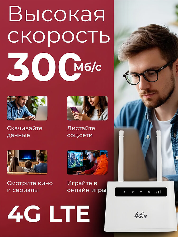 Роутер-модем R102 от SIM-карты, 4G/LTE, Wi-Fi, 300 Мбит/c, белый информация:
