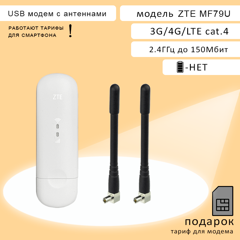 Отзывы на Модем USB Zte MF79, WiFi 2,4ГГц, скорость до 150Мбит + сим карта + внешние антенны TS-9
