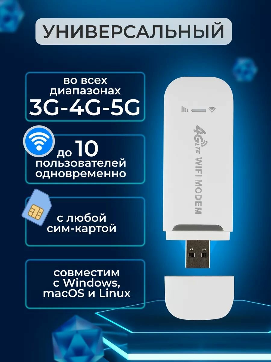 Карманный беспроводной Wi Fi модем 4G USB белый, до 10 устройств