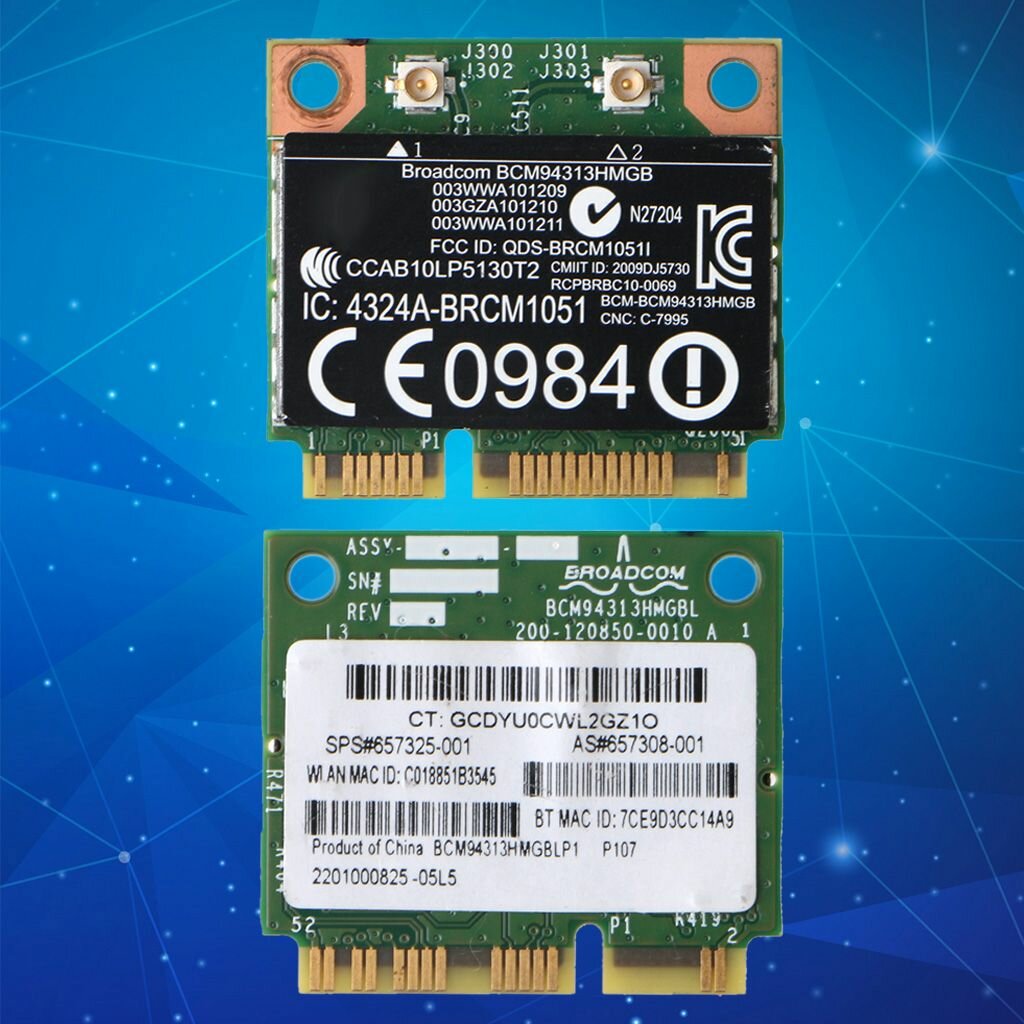 Мы выбрали 10 лучших цен на Комбинированная беспроводная сетевая карта HP BCM94313HMGB + Bluetooth. Перед тем как купить Комбинированная беспроводная сетевая карта HP BCM94313HMGB + Bluetooth посмотрите найденные предложения из Яндекс Маркета и других сайтов на основе XML фидов.