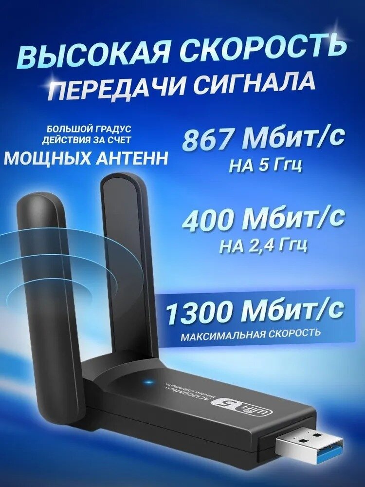 WiFi адаптер 2.4 ГГц / 5 ГГц для компьютера и macbook, скорость 1300 Mbps информация: