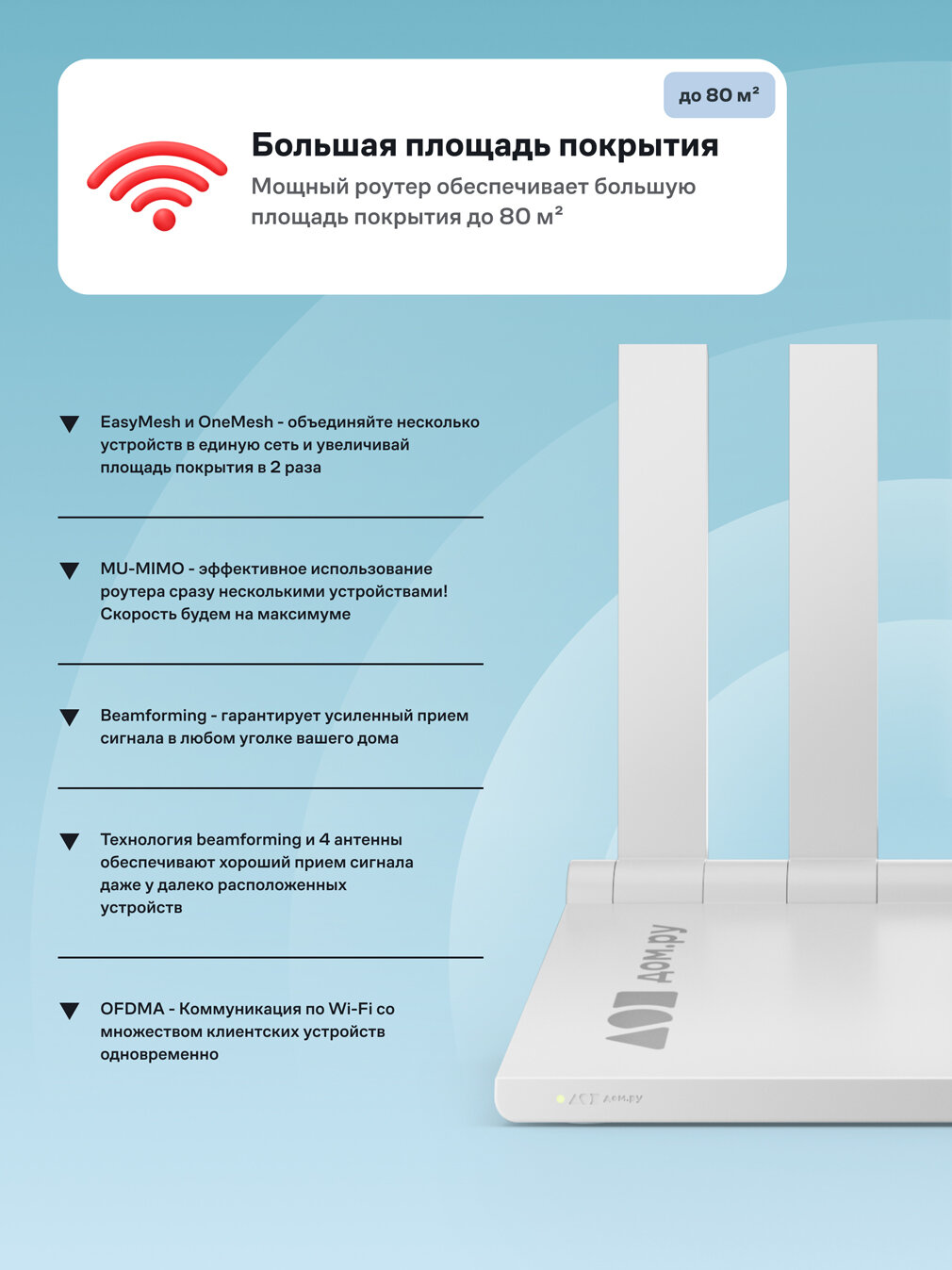 Маршрутизатор Wi-Fi роутер Дом. ру Wave AX1500 белый информация: