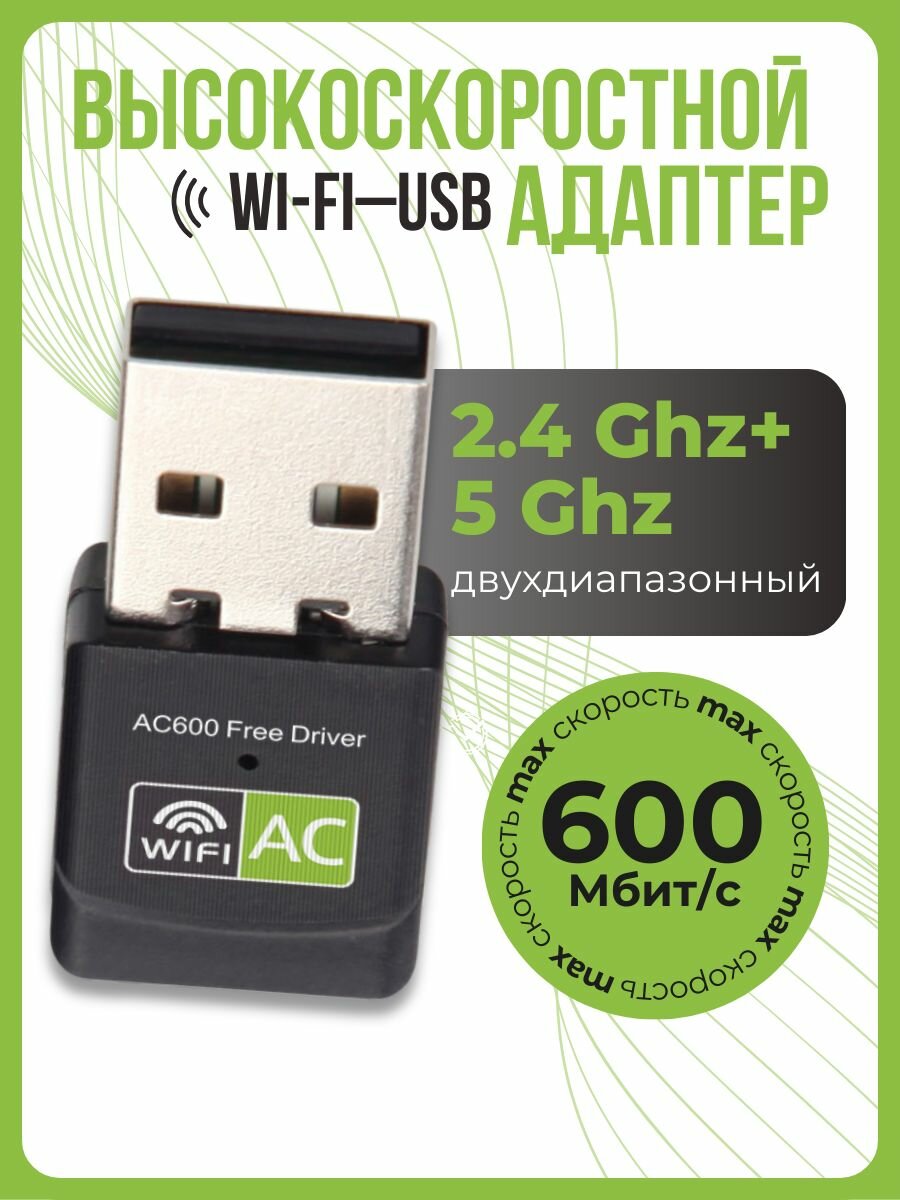 Wi-Fi адаптер 600Мбит/c. USB, беспроводной, двухдиапазонный, 2.4Ghz и 5Ghz информация: