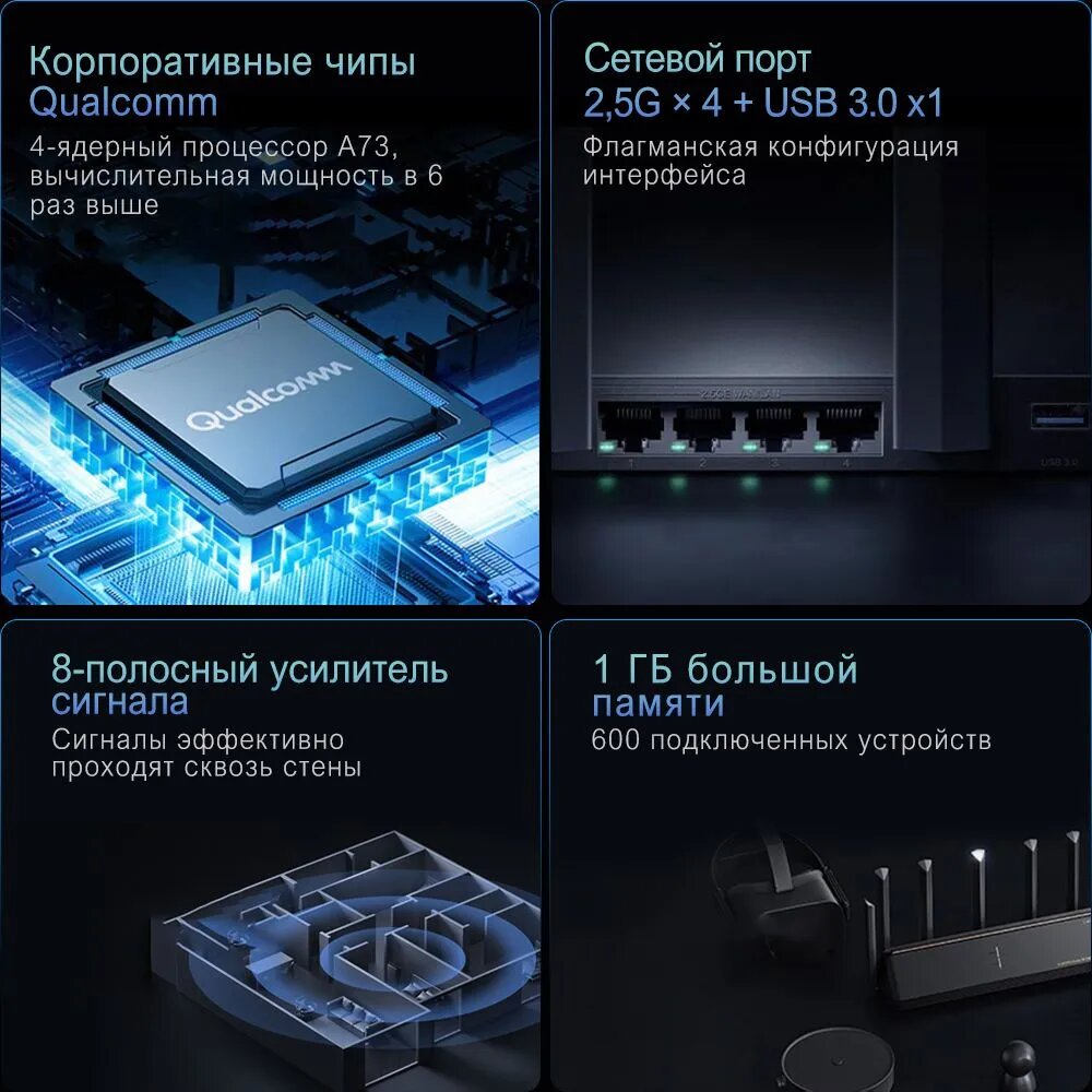 Wi-Fi роутер Xiaomi Router BE7000, WiFi7, Сетевой порт 2,5G x 4+USB3.0 x 1 Global информация: