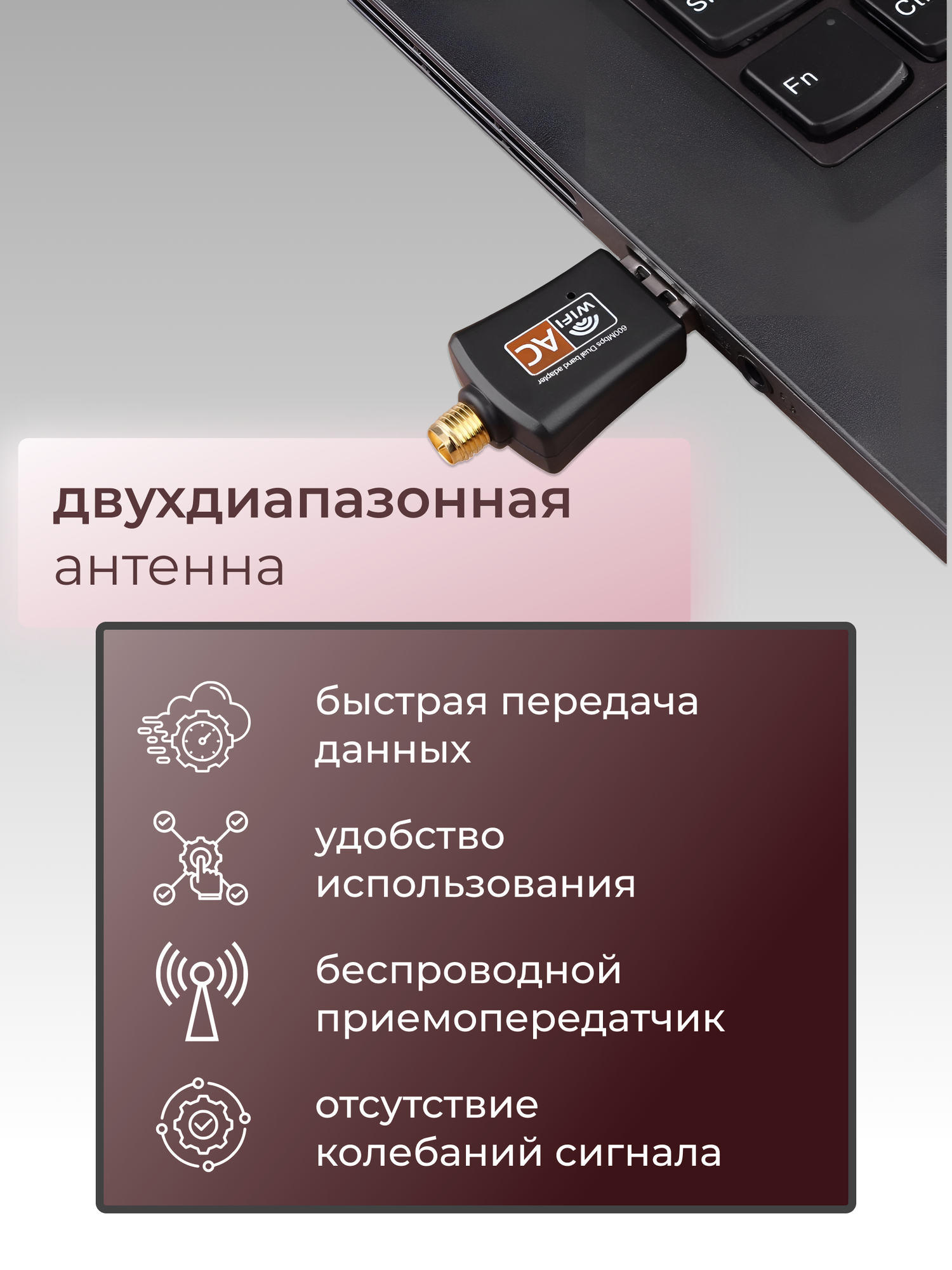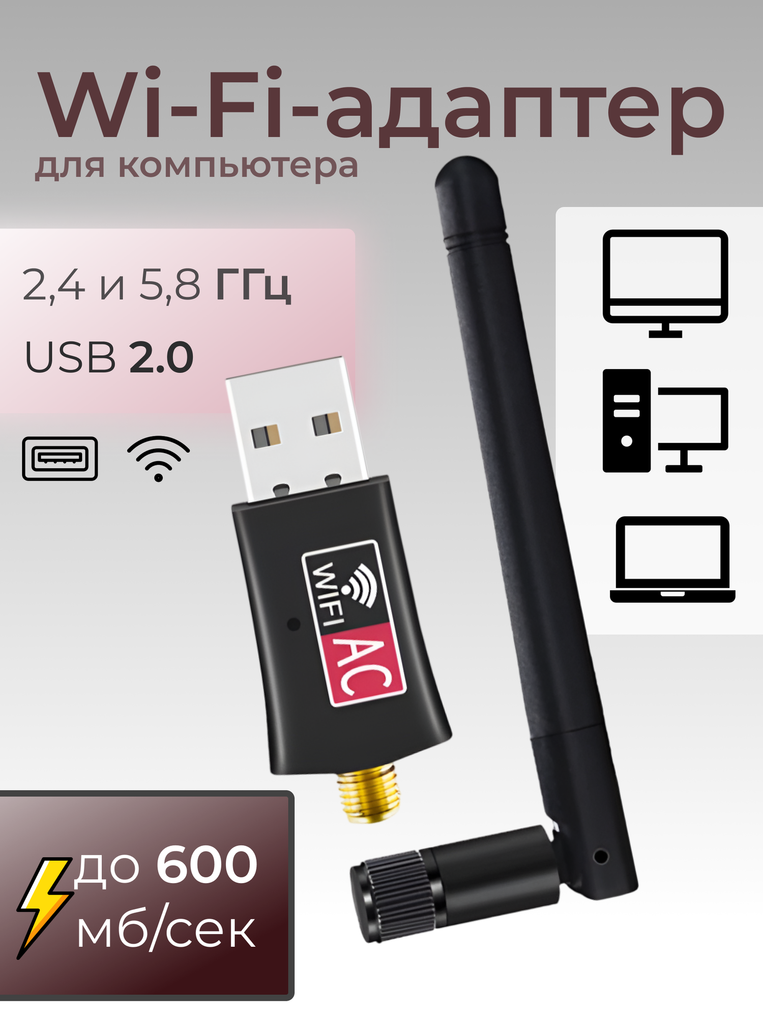 Wi-Fi-адаптер для компьютера 5 ГГц / 2.4 ГГц с антенной информация: