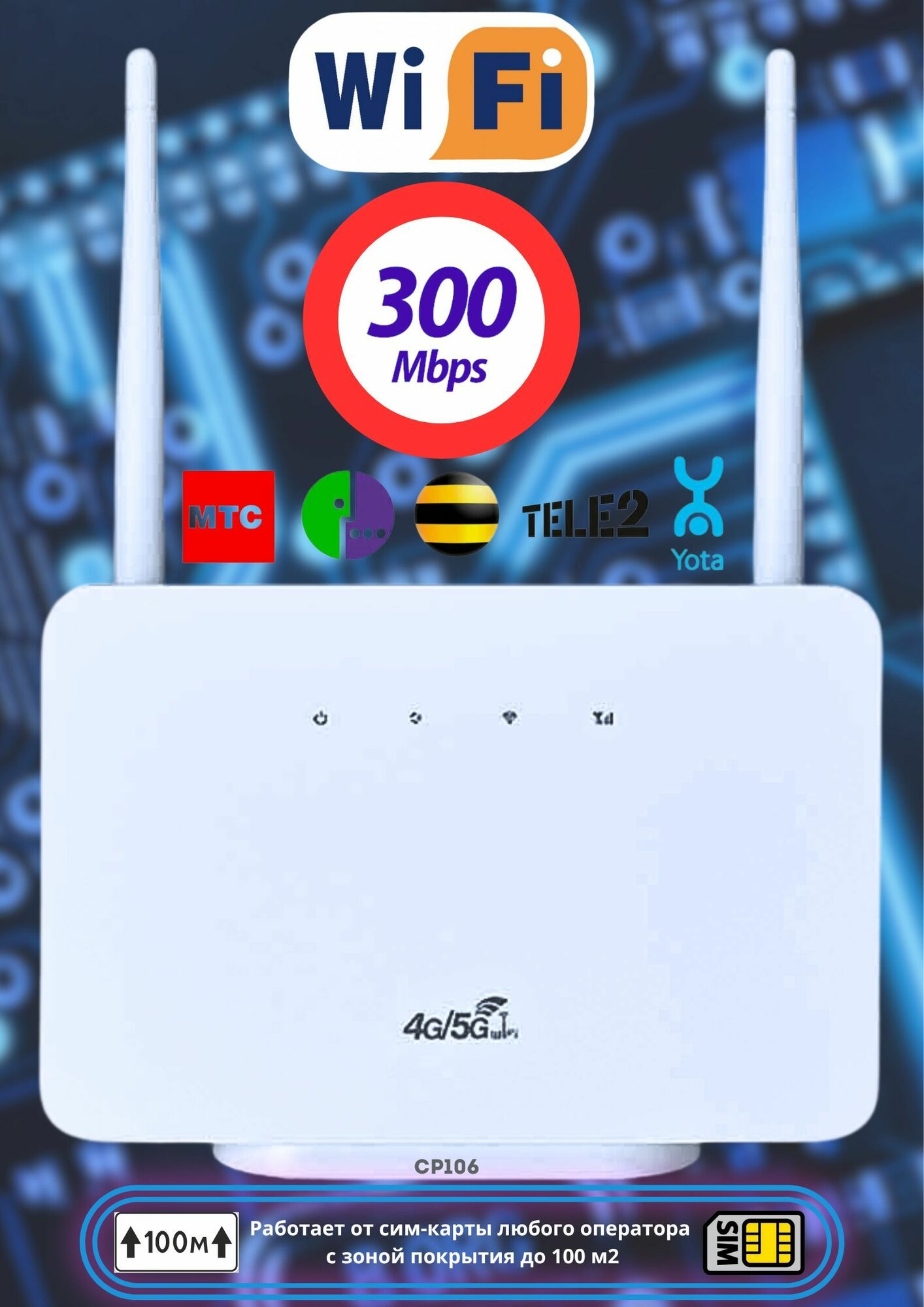 3G/4G LTE Роутер CP 106 LTE, Wi-Fi 2,4 гГц, с поддержкой любых Сим карт
