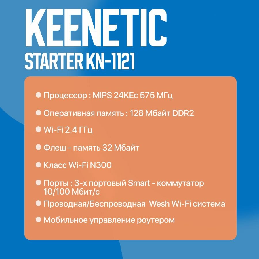 Wi-Fi роутер для дома Keenetic Starter (KN-1121) информация: