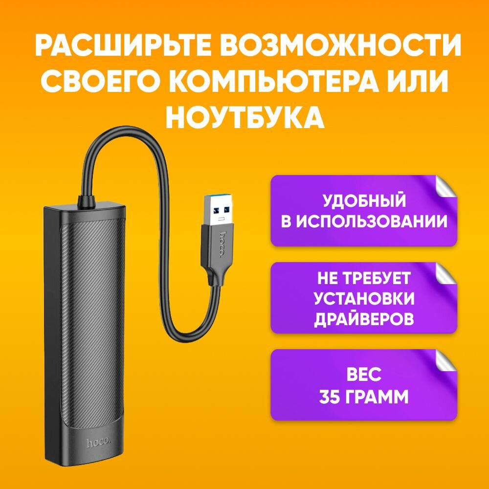 Отзывы на Сетевой Ethernet адаптер переходник HOCO HB42 USB-A - LAN Rj45 + USB 3.0*3, серый