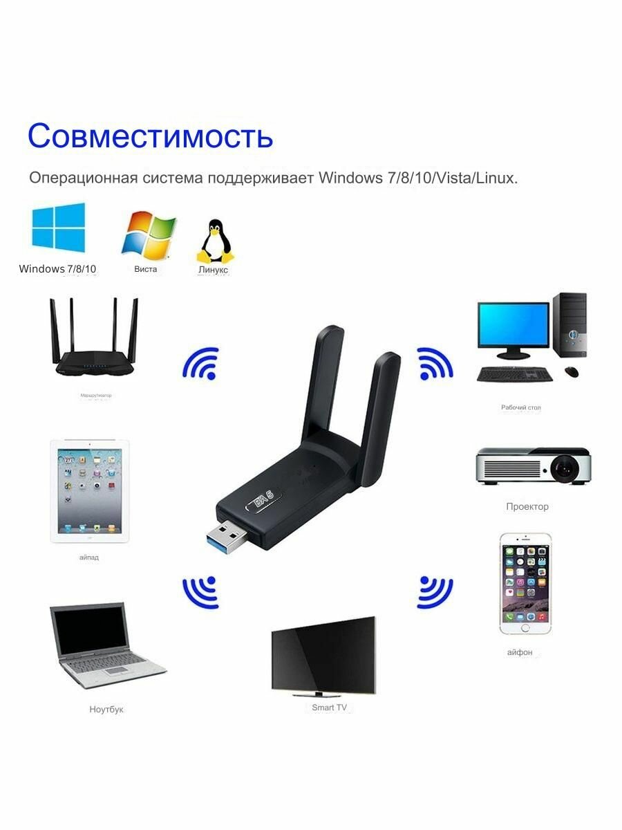 10 цен на WI-FI адаптер RTL 8812 BU 5dBi 1300 Mbs USB 3.0 AC1300