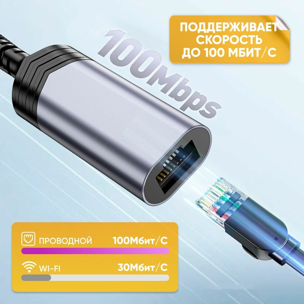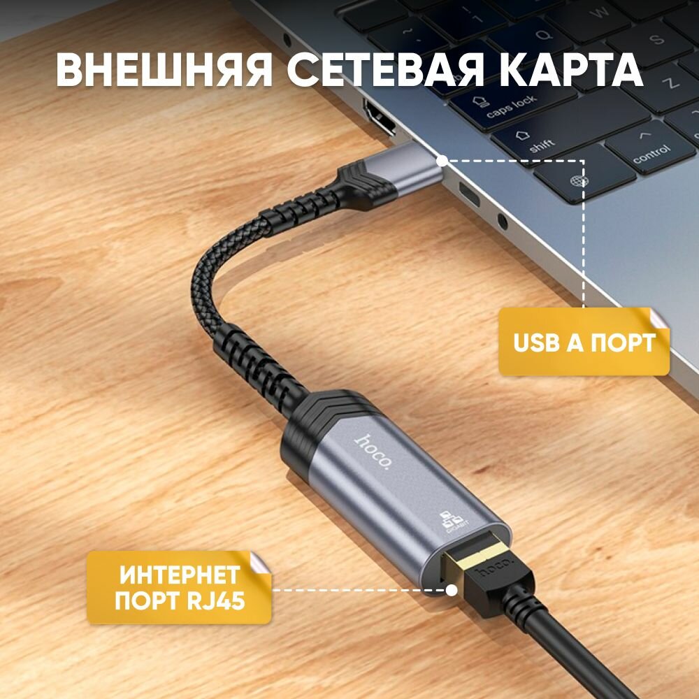 Сетевой Ethernet адаптер переходник USB-А - LAN HOCO UA26, лан-кабель коннектор 100 Mbps, сетевая карта Ethernet RJ45 информация: