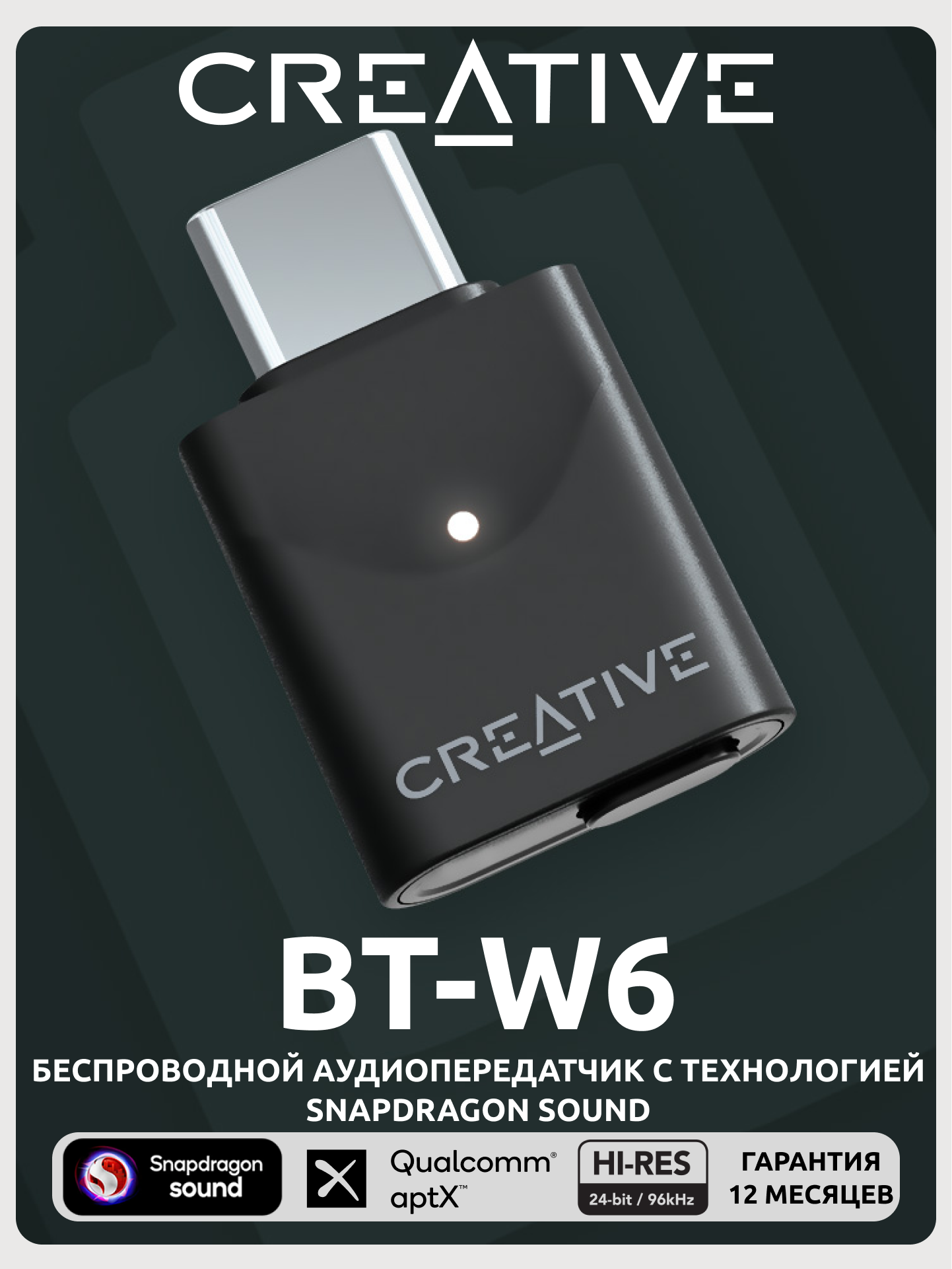 Адаптер Bluetooth Creative BT-W6 , LC3+, Snapdragon Sound, LE Audio, 5.4, aptX LL, aptX Adaptive информация: