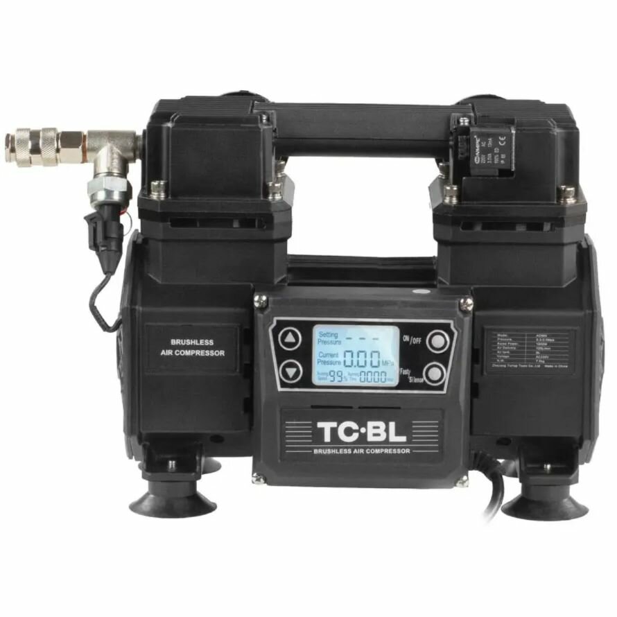 Компрессор воздушный поршневой бесщеточный безмасляный TC-BL AC660, производительность 125 л/мин. Компрессор для пневмоинструмента, продувочной техники, накачки шин и шаров, для покраски информация: