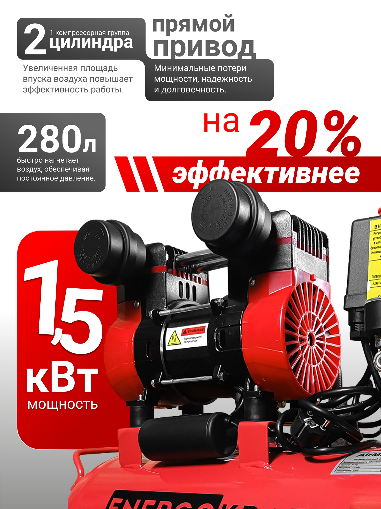 Компрессор ENERGOKRAFT AIRMAX, безмасляный, 1,5 кВт, 280 л/мин. информация: