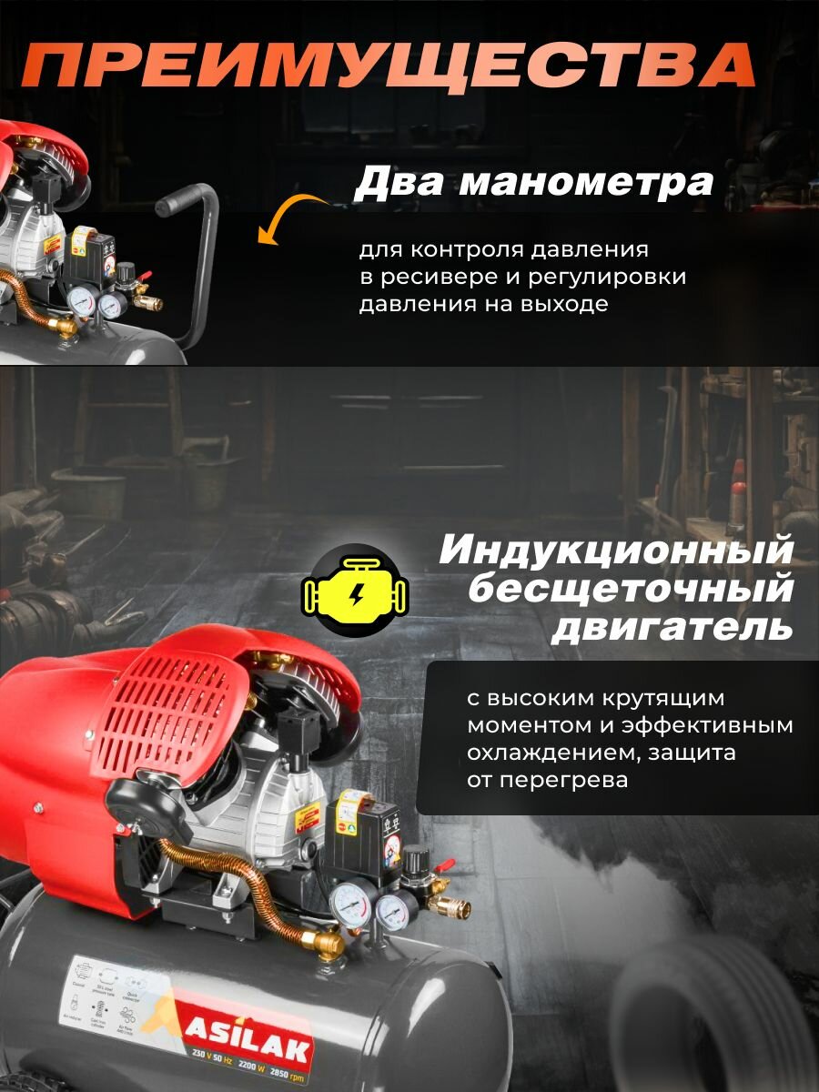 Отзывы на Компрессор воздушный масляный ASILAK SLA-544, ресивер 50 литров (AS2840-2)
