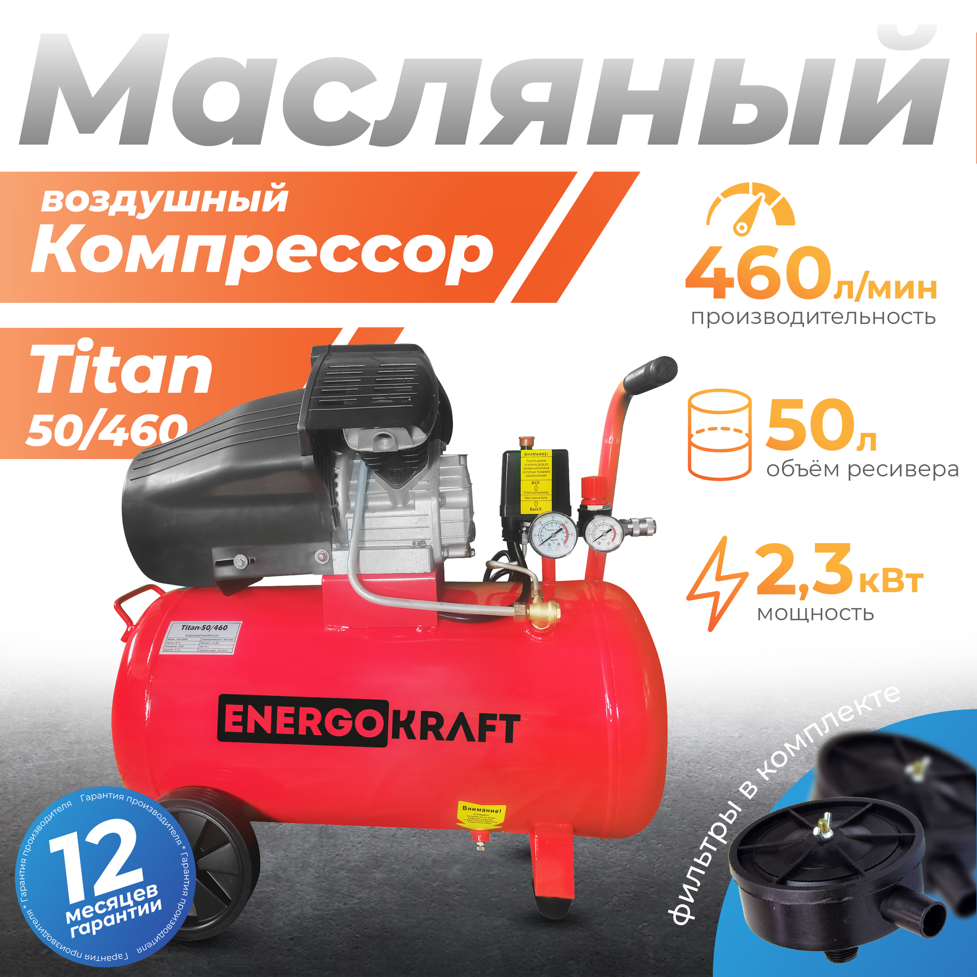 10 цен на Компрессор ENERGOKRAFT Titan-50/460 ( 2,3кВт, 50л, 460 л/мин)