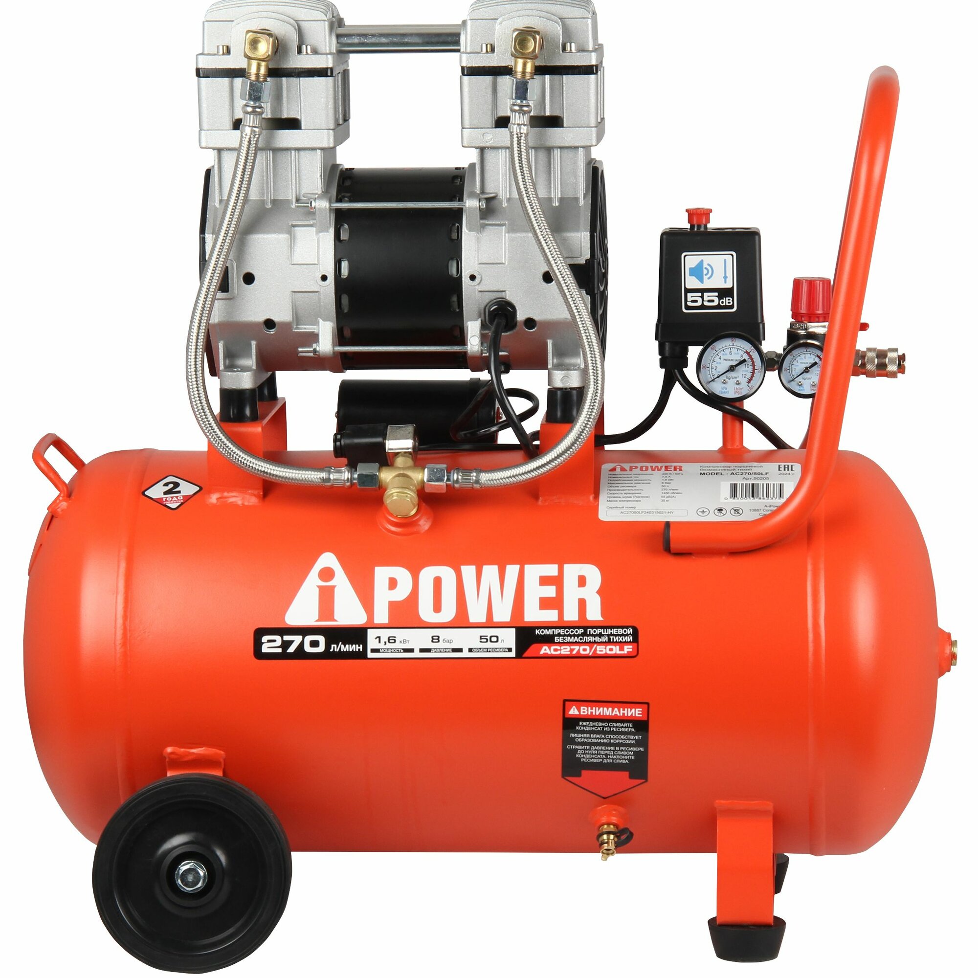 Отзывы на Компрессор поршневой безмасляный A-iPower AC270/50LF; 200л/мин; 1,6кВт; ресивер 50 л; 8 бар