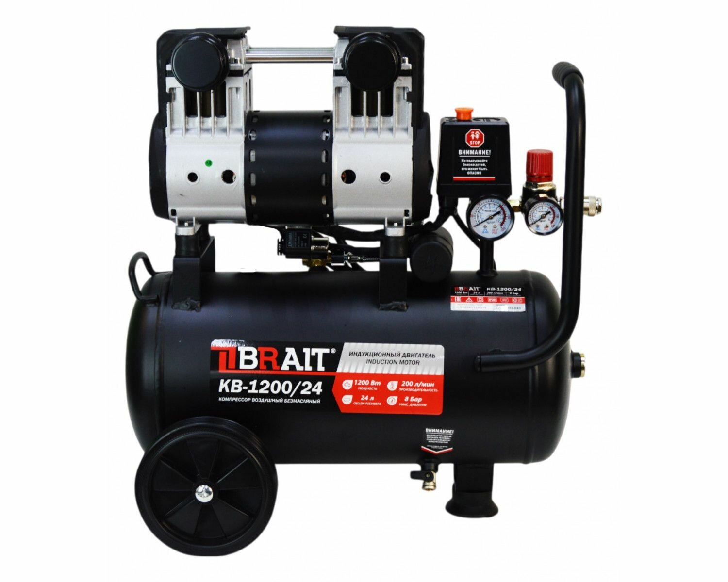 Компрессор воздушный KB-1200/24 (1200Вт,220В/50Гц, объем ресивера 24л,1440об/мин,200л/мин,8Бар) информация: