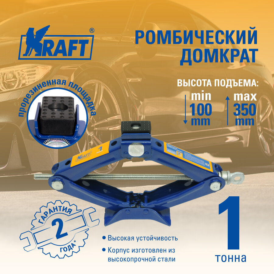 KRAFT KT800023 домкрат ромбический универсальный (1 т) kraft (мин 100мм-мак 350мм) (tool)