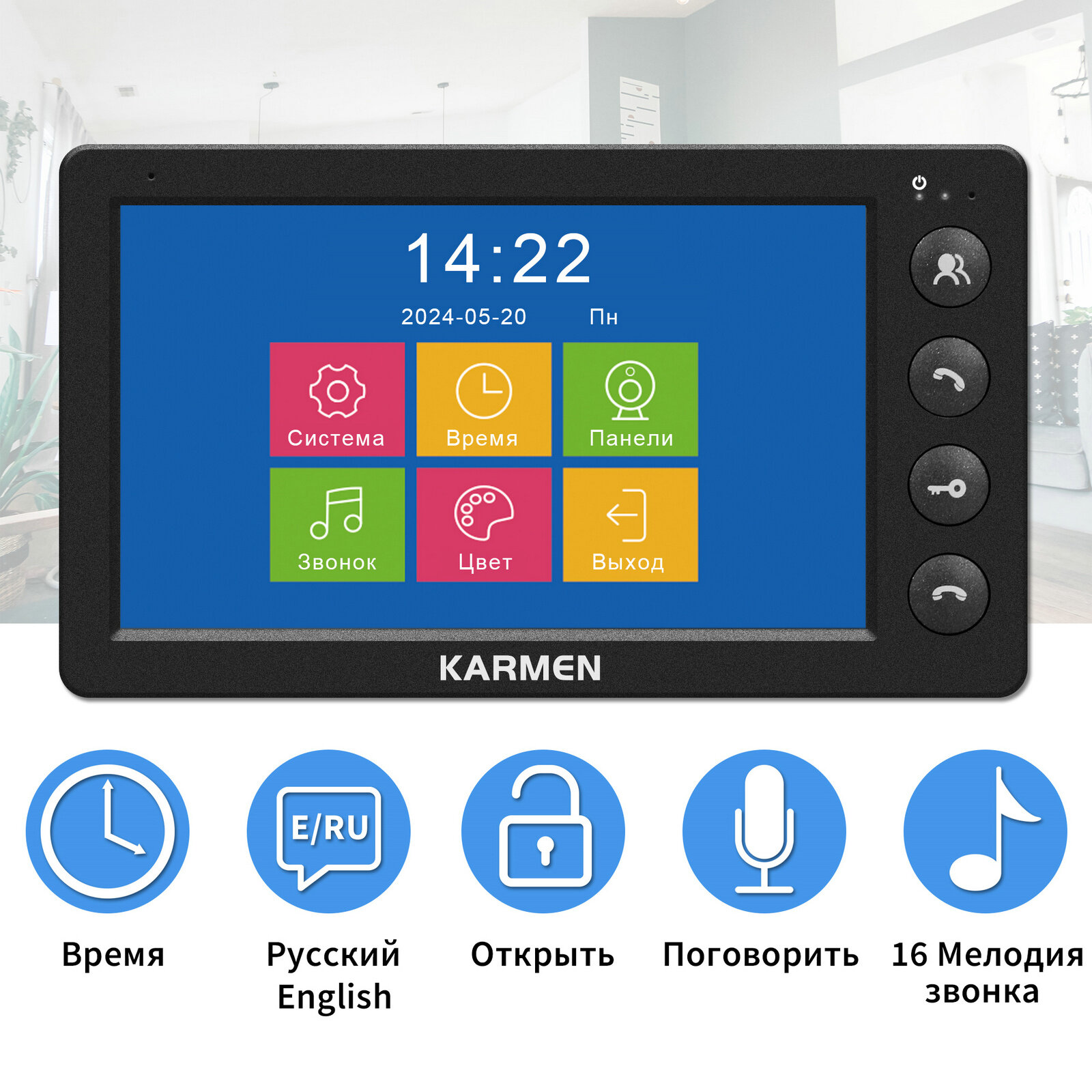 Отзывы на KARMEN Видеодомофон с экраном 7', черный Металлический дверной звонок 1000TVL,Защита от угона, дождя и снега