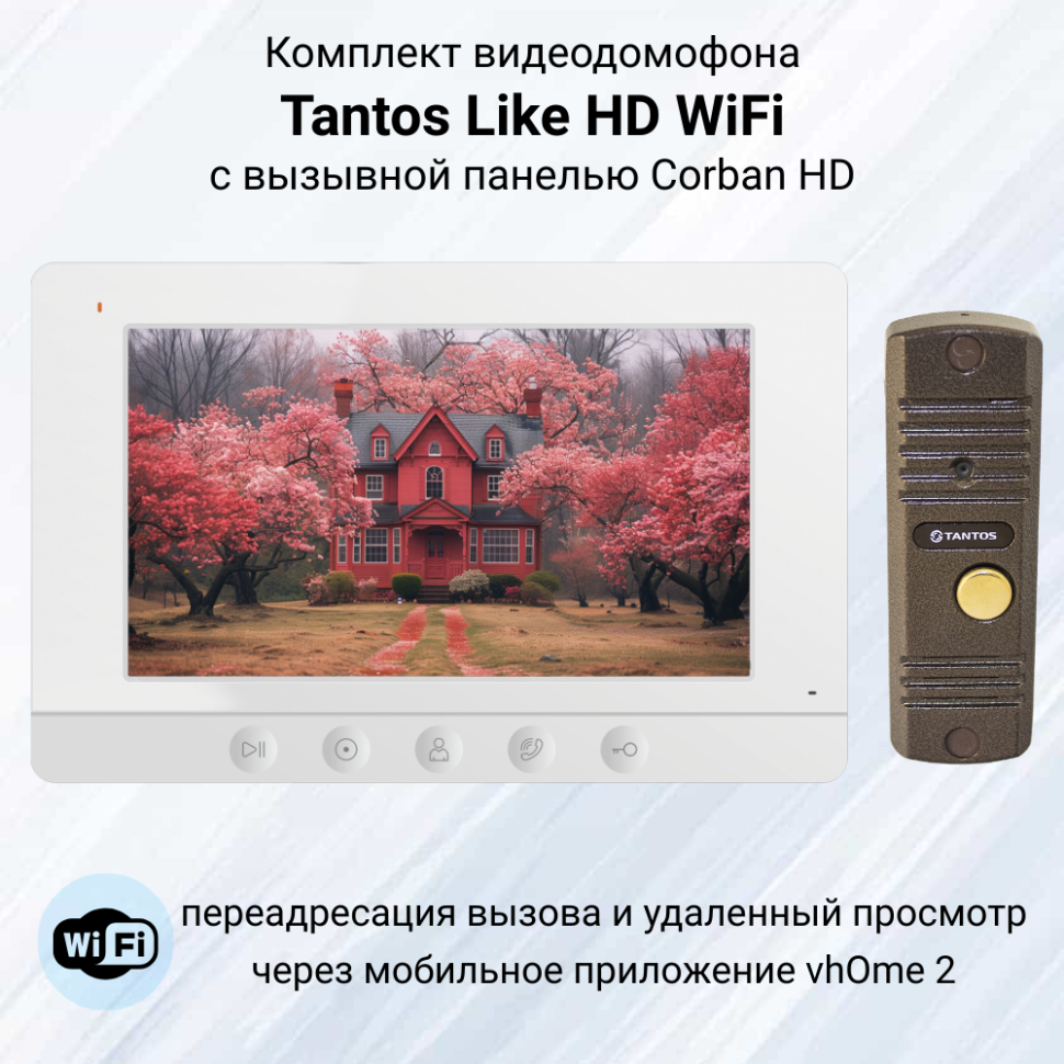 Видеодомофон Tantos Like HD WiFi комплект с панелью Corban HD для квартиры или дома информация: