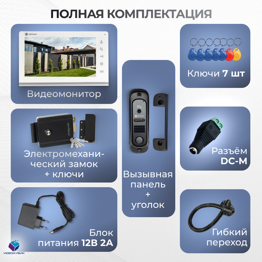 Видеодомофон для частного дома, комплект с электромеханическим замком на калитку, электронными ключами, вызывной панелью информация: