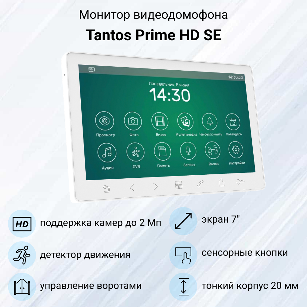 Видеодомофон Tantos Prime HD SE (белый) комплект для квартиры или дома с панелью iPanel 2 HD (металлик) информация: