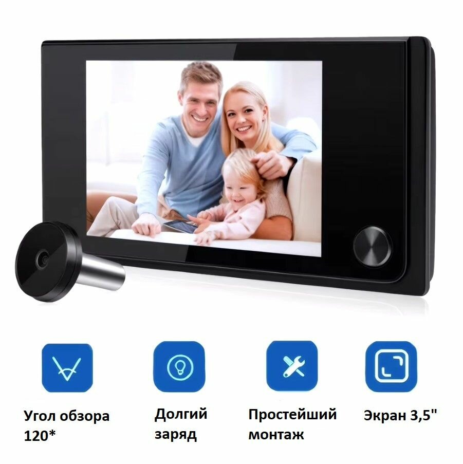 Видеоглазок для входной двери Лайт MAX, с большим экраном, толщина двери до 110, угол обзора 120 градусов, не привлекает внимания информация: