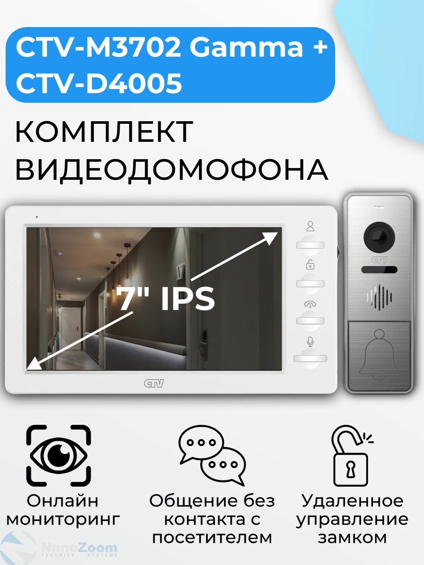 10 цен на Комплект видеодомофон для квартиры: аналоговый монитор 7" CTV-M3702 Gamma + вызывная панель CTV-D4005, для дома или офиса, удаленное открытие замка, подключение к подъездному домофону