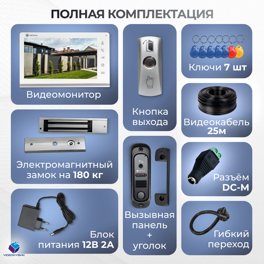 Видеодомофон для частного дома, комплект с электромагнитным замком, электронными ключами, кабелем, вызывная панель с считывателем информация: