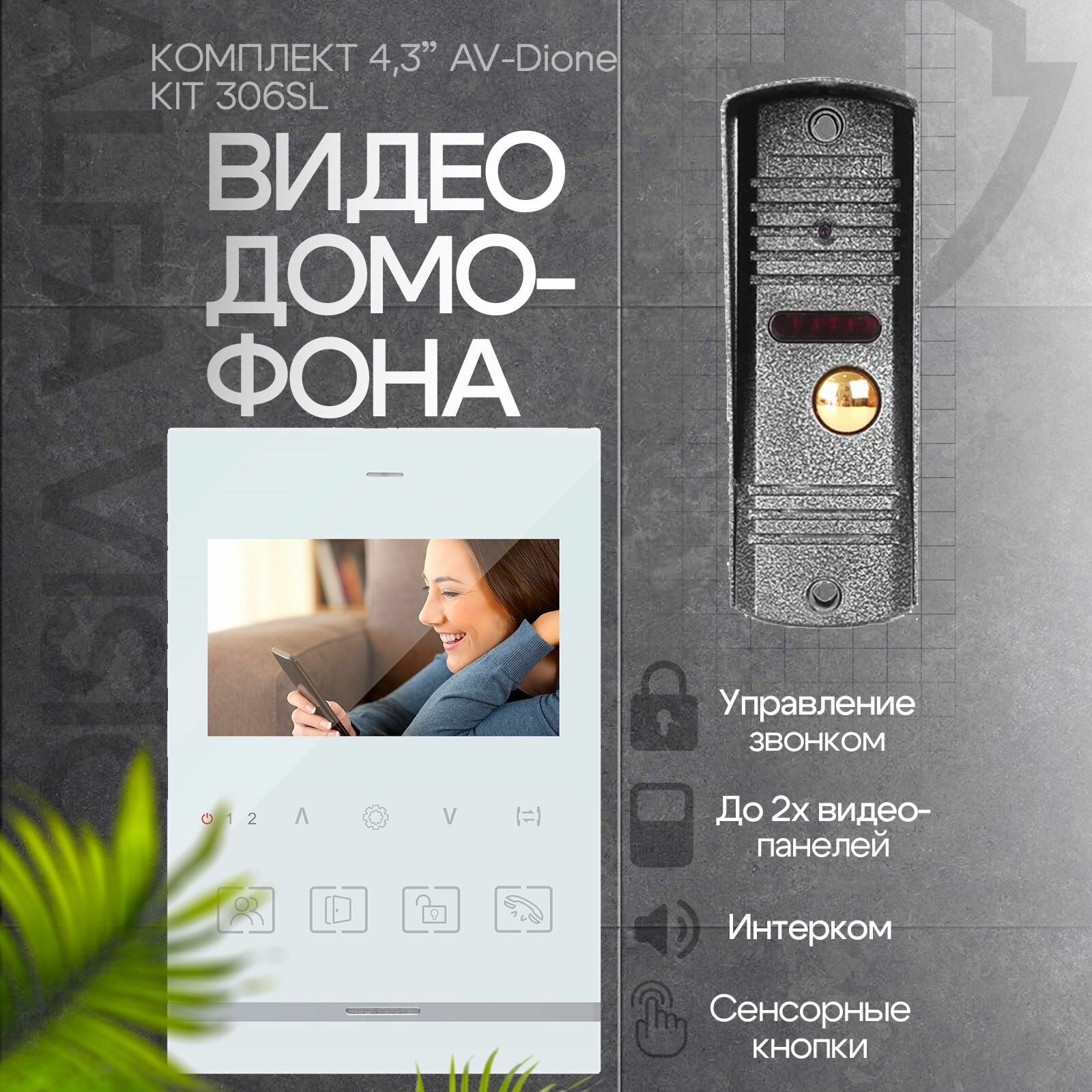 10 цен на Комплект видеодомофона Dione KIT+вызывная панель(306sl). Экран 4.3". Совместим с подъездным домофоном через модуль сопряжения.