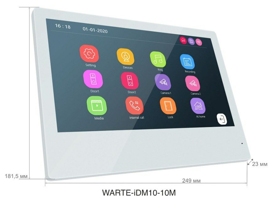 Видеодомофон WARTE белый с сенсорным 10" экраном c записью по детекции движения (домофон) информация: