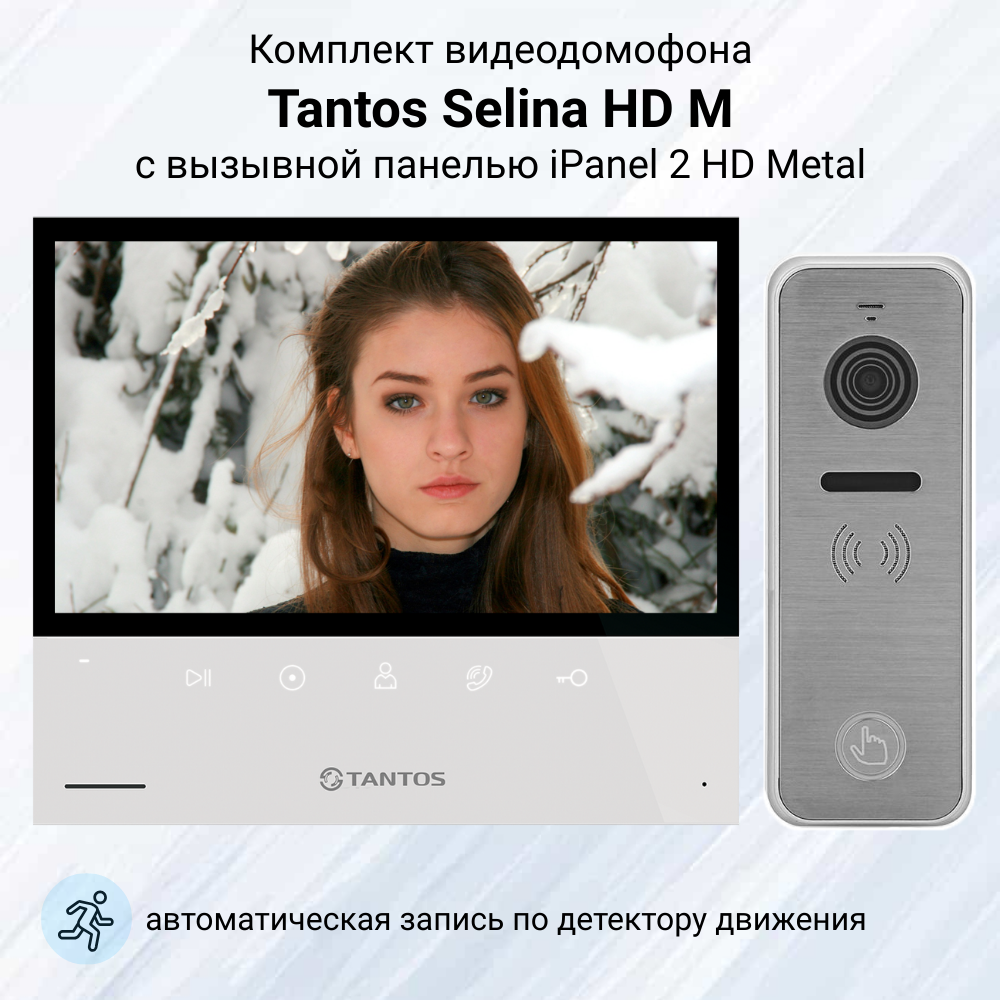Комплект видеодомофона Tantos Selina HD M и вызывной панели iPanel 2 HD (металлик) для квартиры или дома информация: