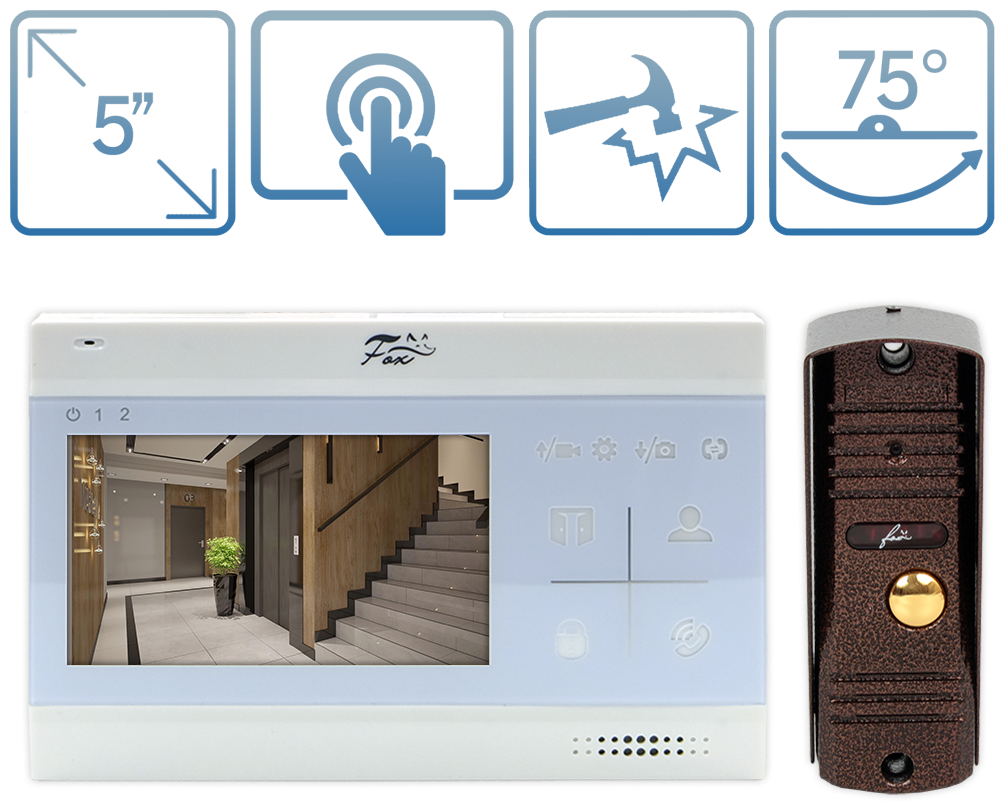 10 цен на Комплект видеодомофона для квартиры FX-VD5SL-KIT белый, диагональ экрана 5 дюймов, антивандальная вызывная панель