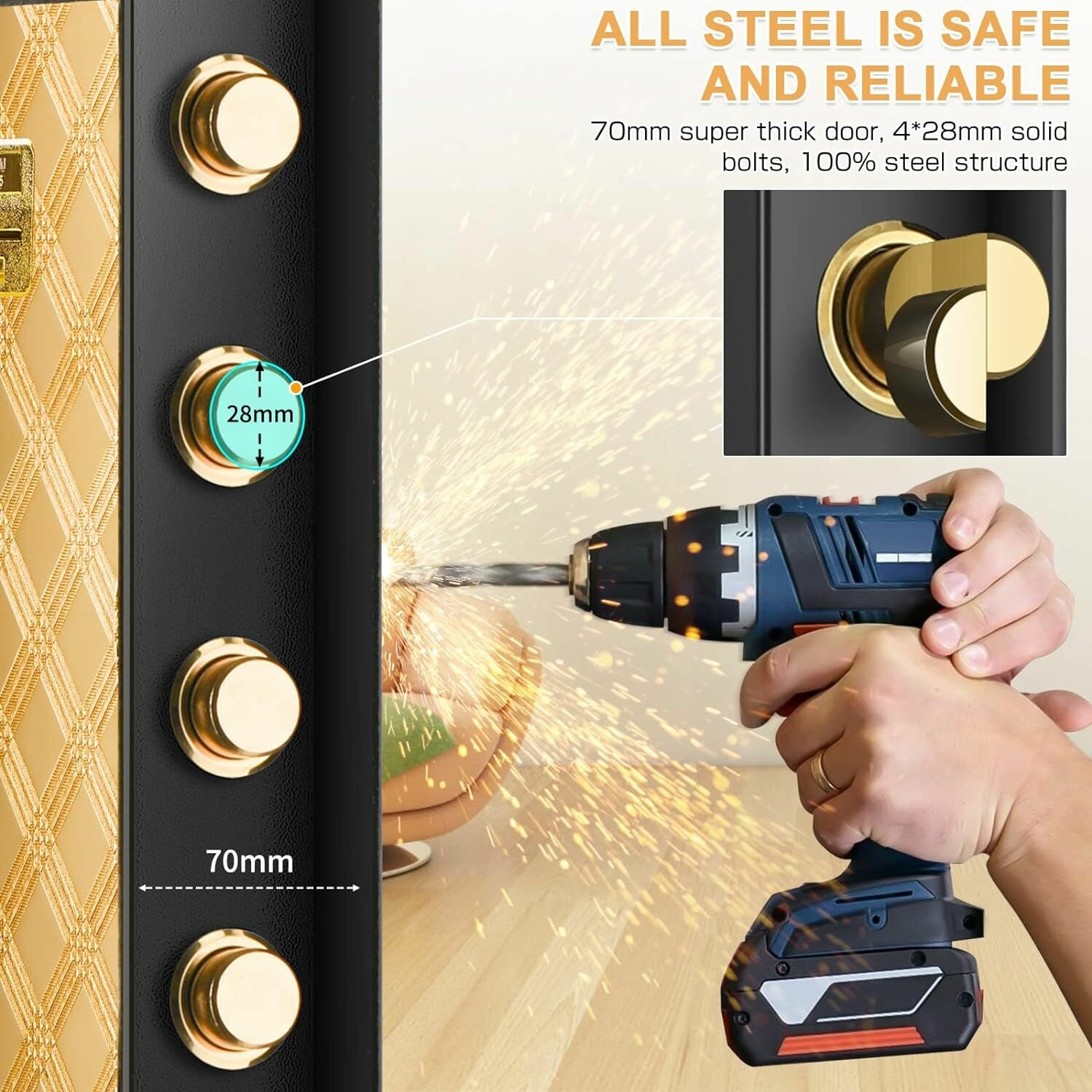 Цельностальной сейф, 3 слоя дополнительного пространства внутри, прочный и долговечный.
