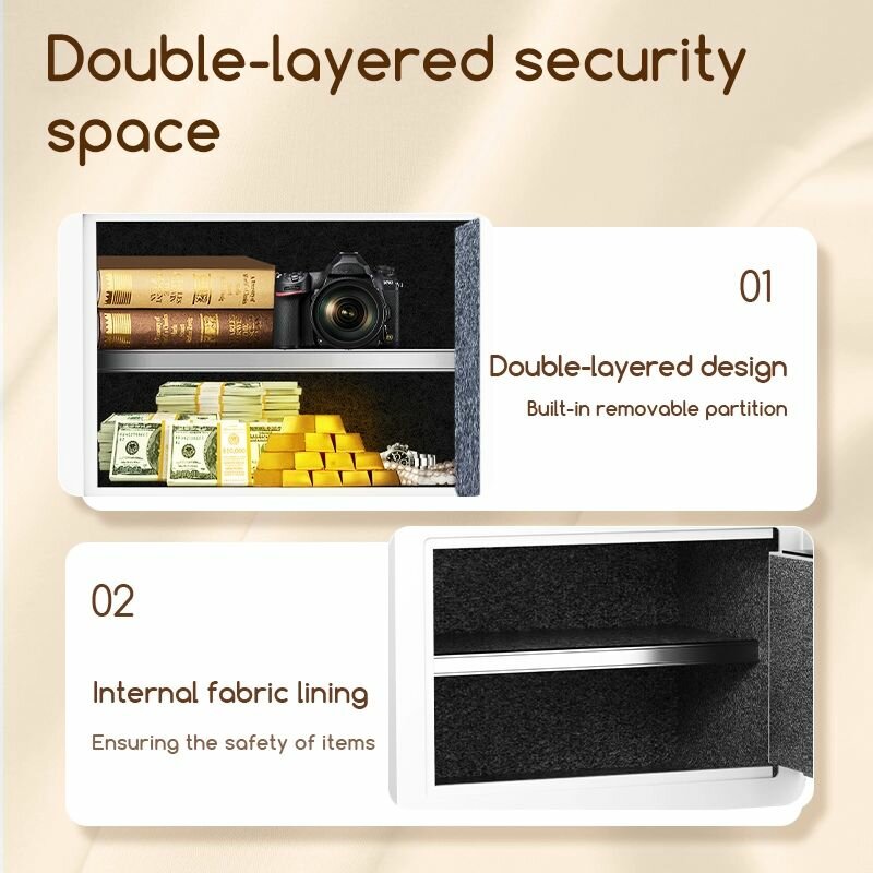 Цельностальной сейф, 3 слоя дополнительного пространства внутри, прочный и долговечный.