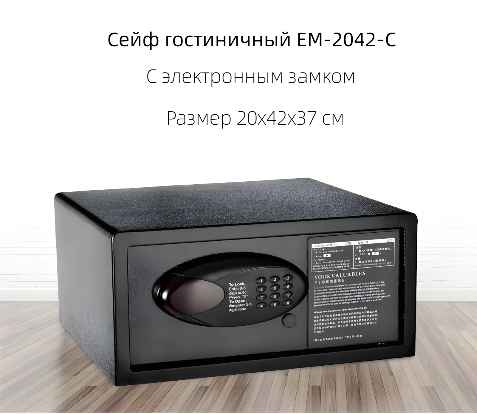 Сейф гостиничный EM-2042-T, с электронным замком, 20х42х37 см, темно-серый информация:
