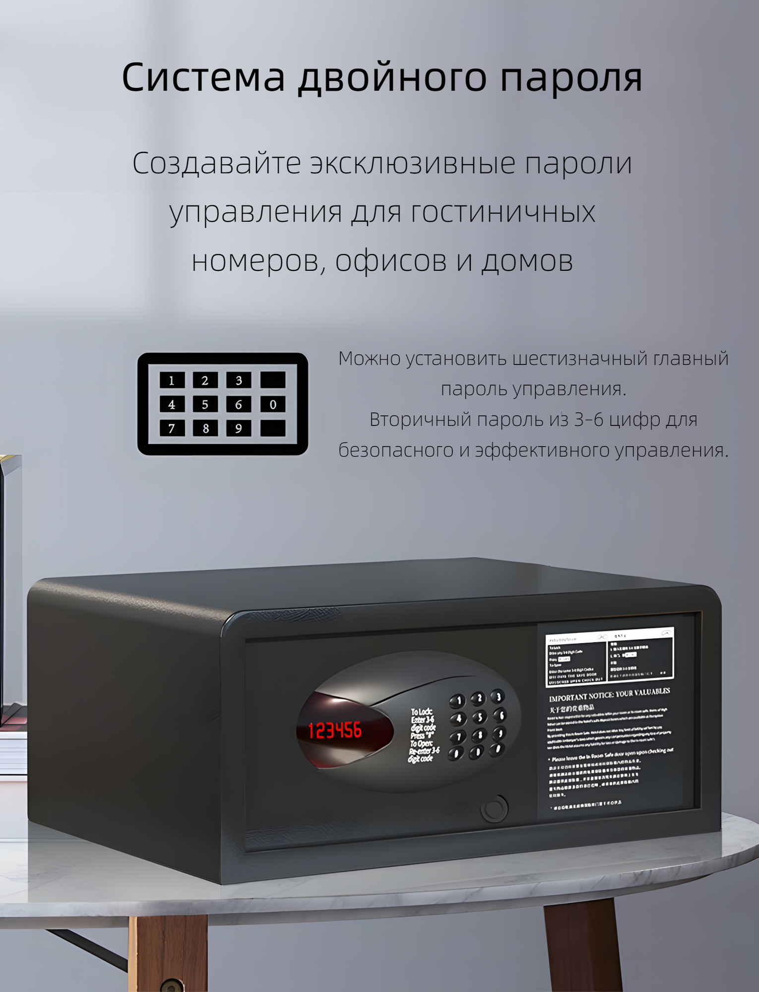 Цельностальной сейф, 3 слоя дополнительного пространства внутри, прочный и долговечный.