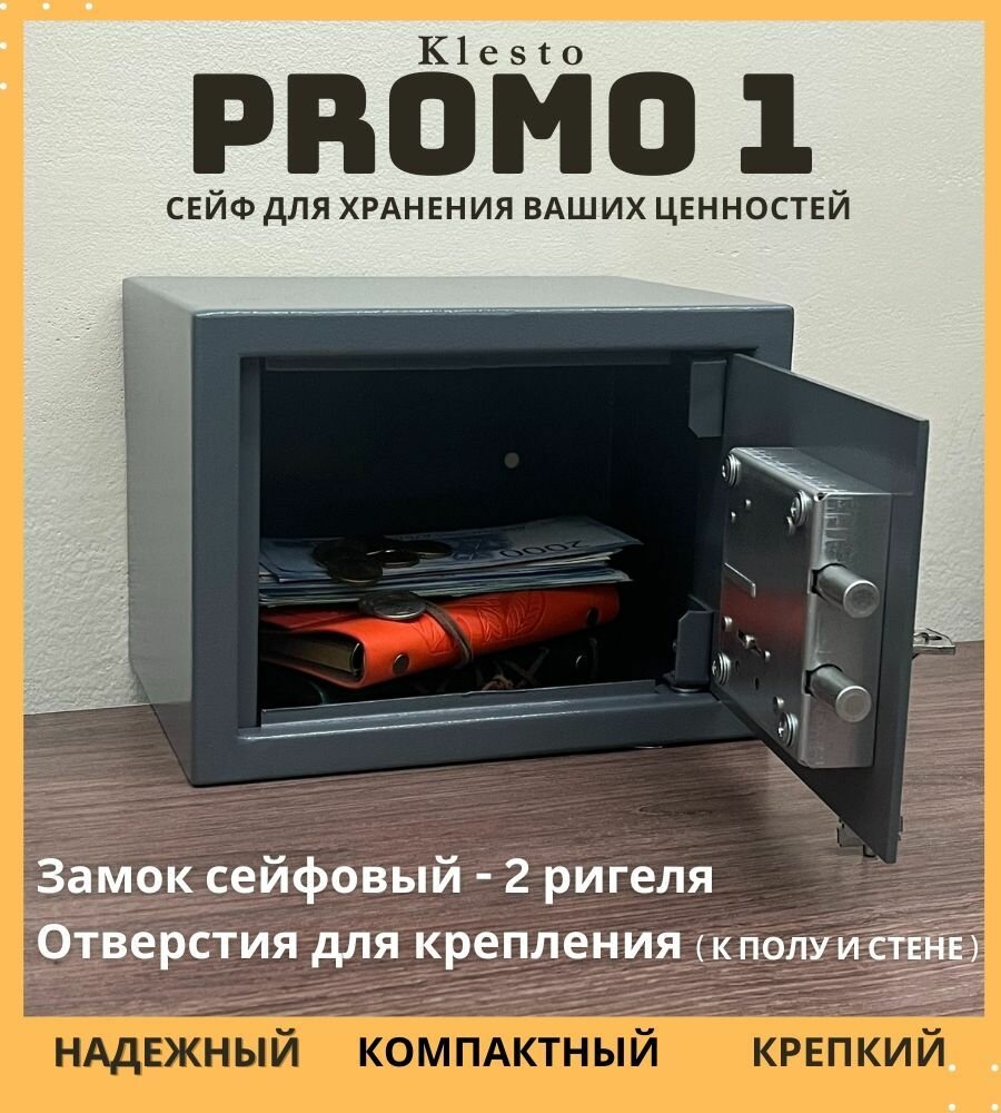 Маленький сейф для дома для хранения денег Klesto PROMO 1 (ВхШхГ - 17х23х27 см), с ключевым замком информация: