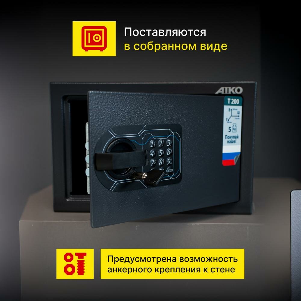 Сейф для документов, денег и драгоценностей с электронным замком AIKO Т200EL, 310х200х200мм информация: