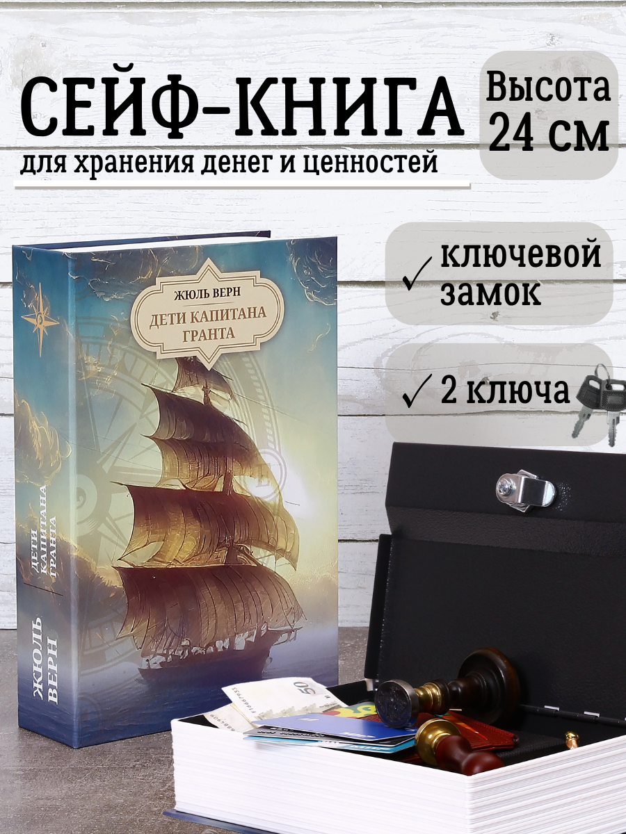 Отзывы на Книга сейф для денег AXLER шкатулка с ключом, копилка в виде книжки, "Дети Капитана Гранта"