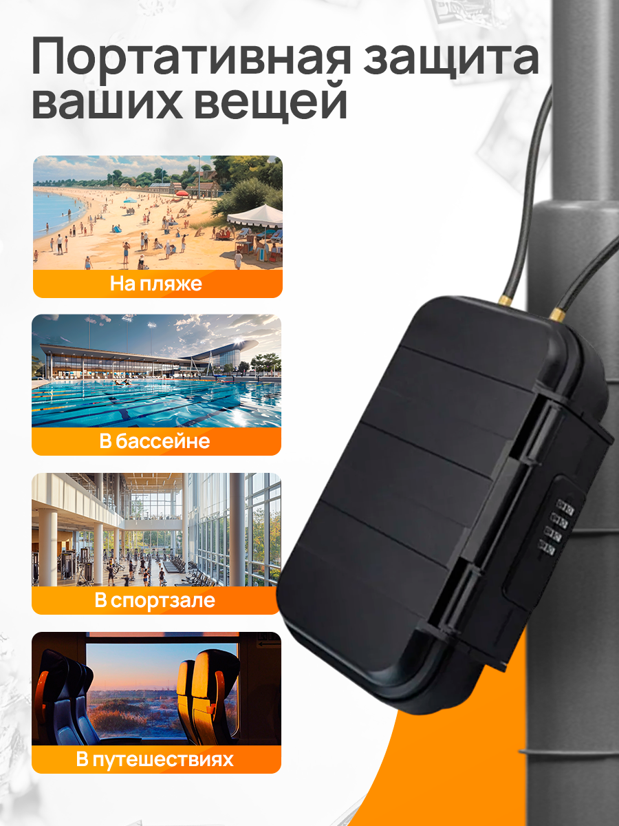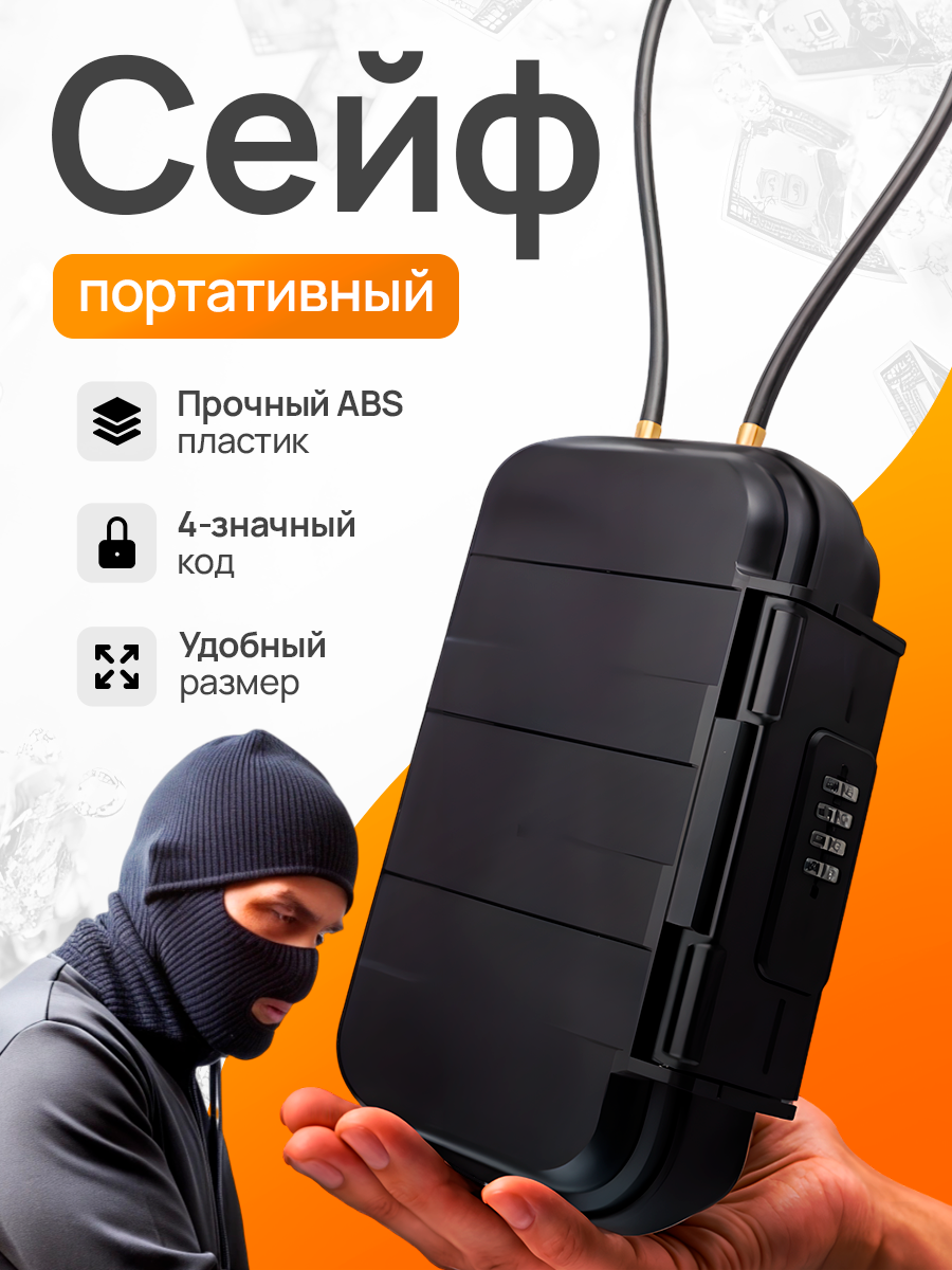 Портативный сейф с кодовым замком и тросом / мини сейф черный информация: