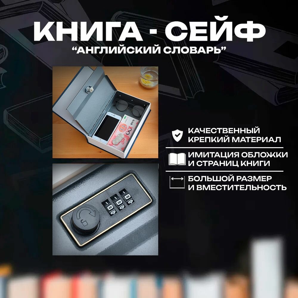 Книга сейф, английский словарь, для хранения денег с кодовым замком 24 см информация: