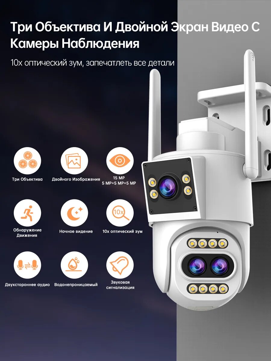 Уличная камера видеонаблюдения 2в1, зум 8х, 2 объектива, IP, Wi-Fi, ONVIF