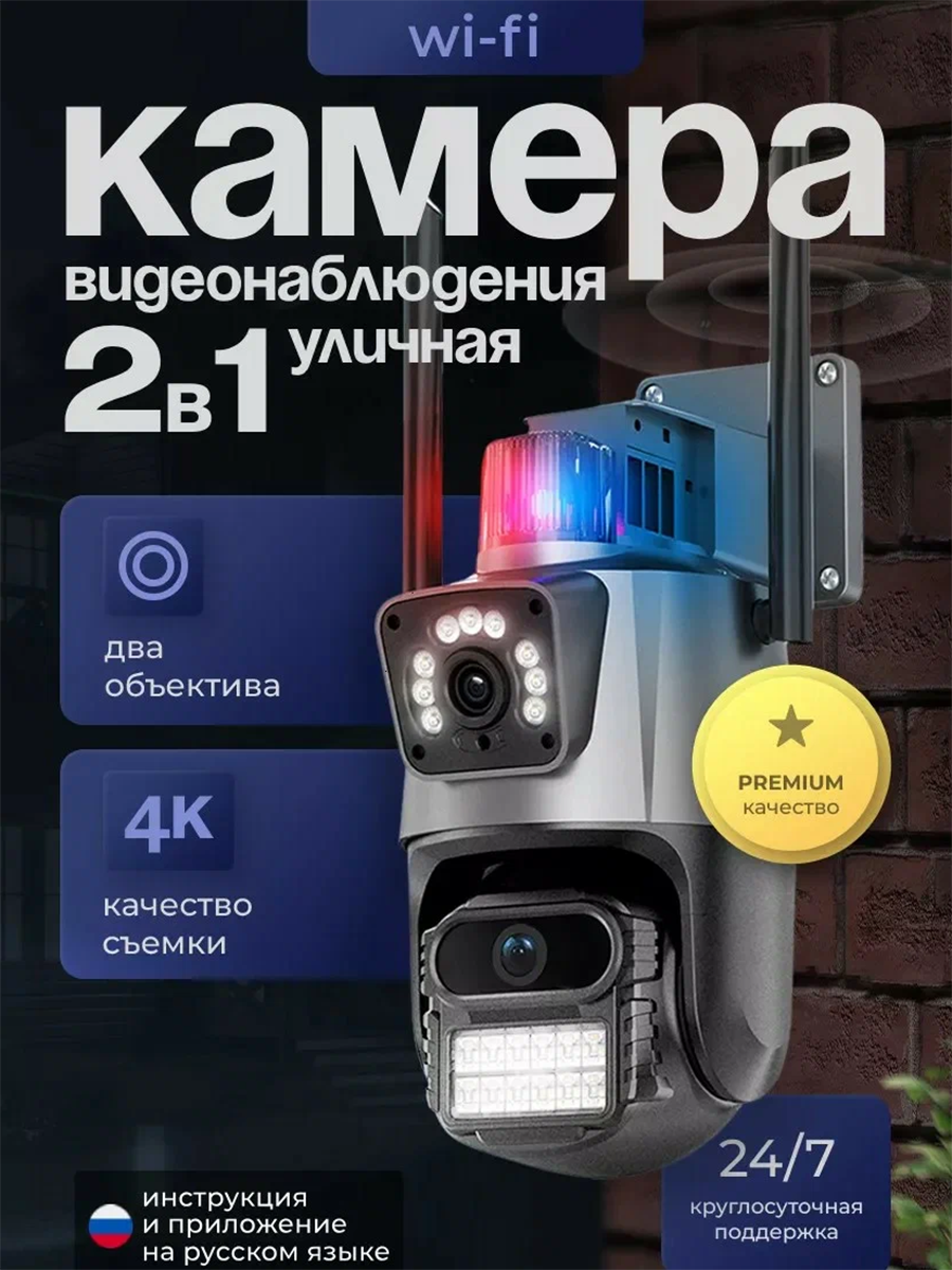 Отзывы на Уличная камера, камера видеонаблюдения уличная, поворотная, ночной режим, датчик движения, Wifi, кабельное подключение, 2 объектива