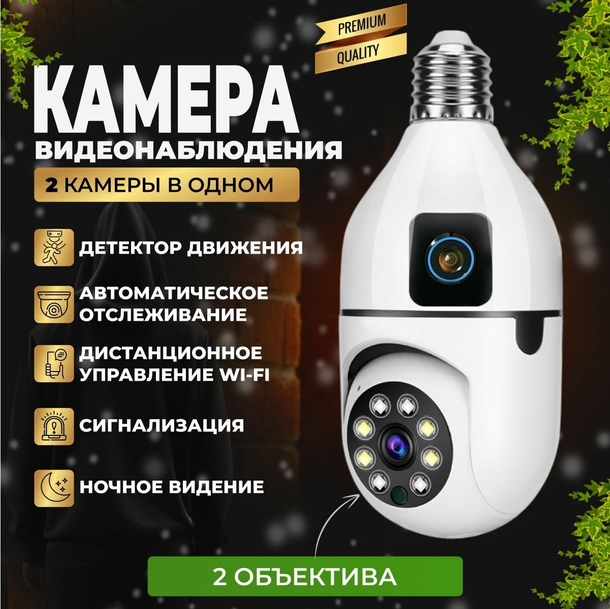 Камера видеонаблюдения лампочка WiFi двойная, IP видеокамера c подсветкой для дома информация: