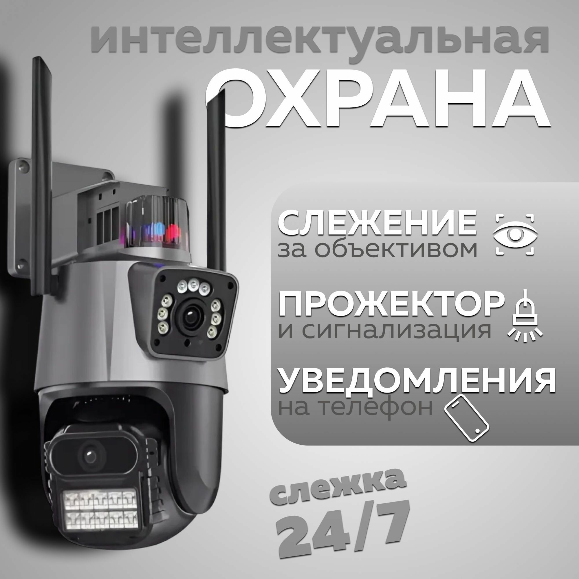 Отзывы на Камера видеонаблюдения wifi уличная IP камера поворотная с датчиком движения и двумя объективами, Серый