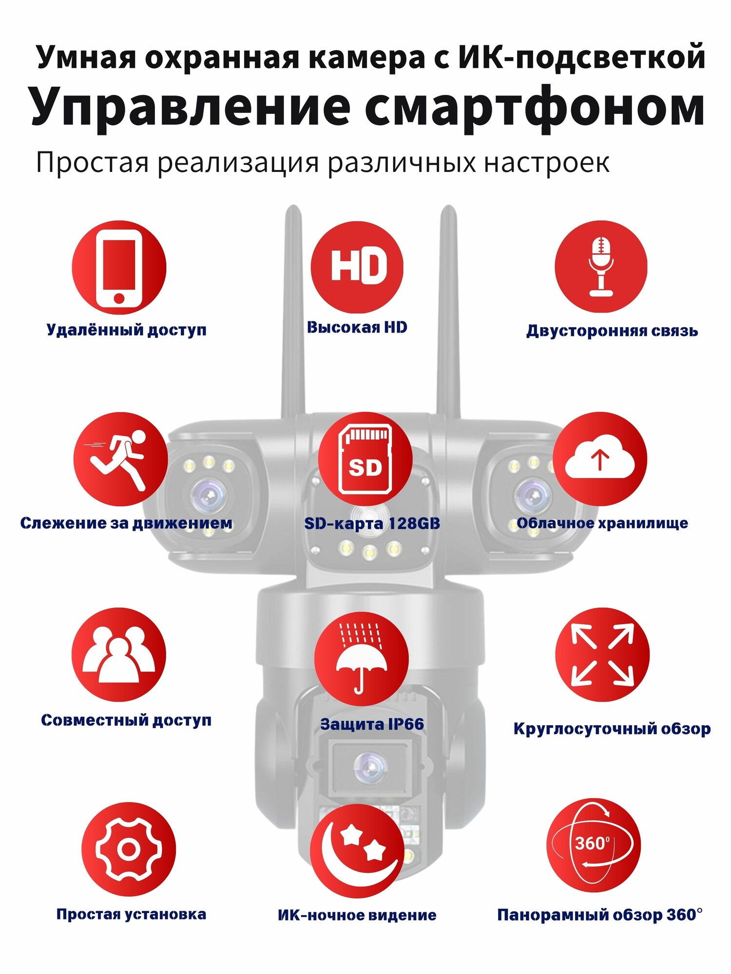 6MP уличная HD-камера видеонаблюдения с тройным объективом, ночным видением, 4G и удалённым управлением со смартфона информация: